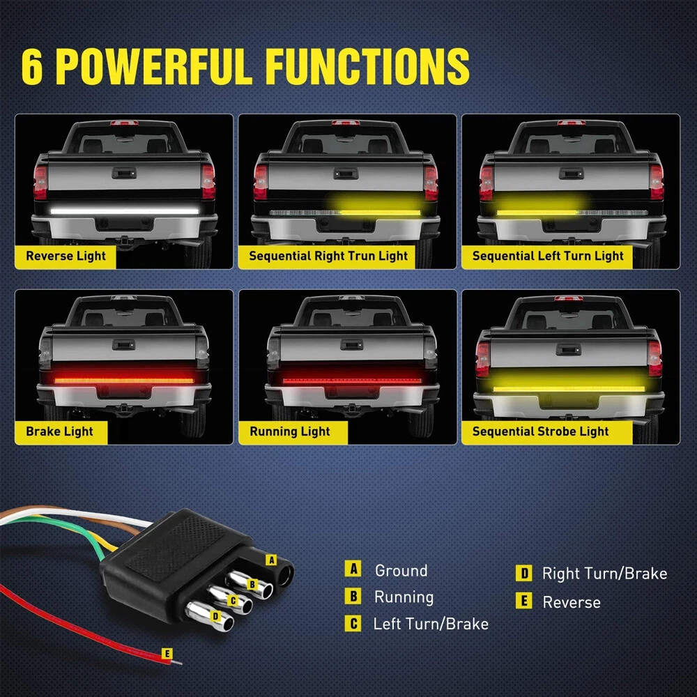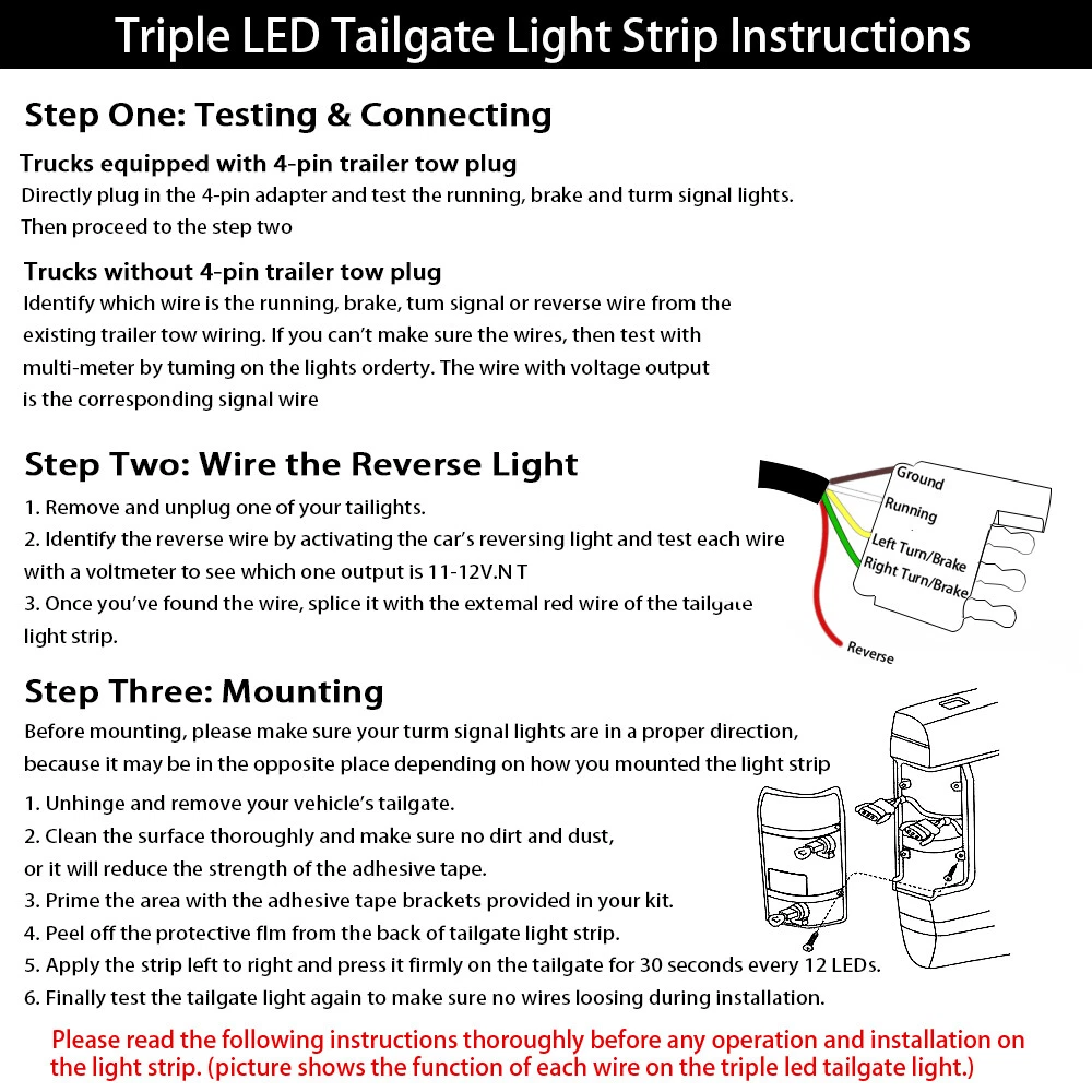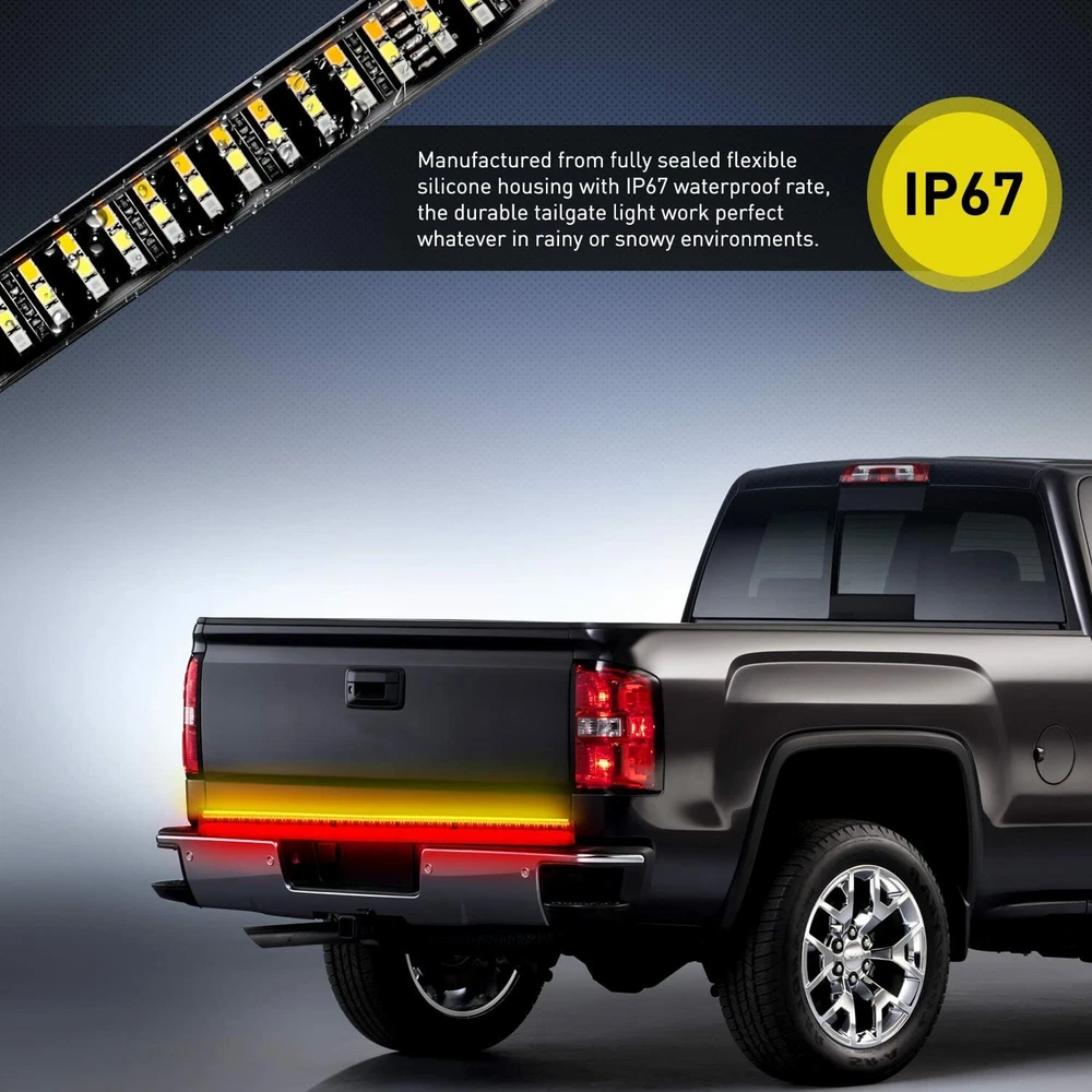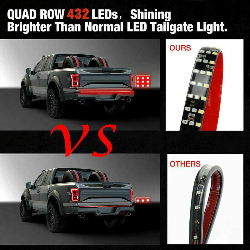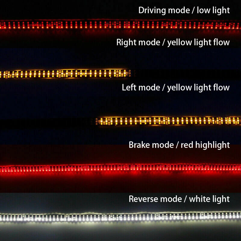 60" 3 Row LED Tailgate Light Bar LED Strip Reverse Brake Signal for GMC Sierra Description Brand New,100% high quality. Input voltage: DC12V LED power: 6W Strip light Length: 60 inch Strip light width : 0.63inch Waterproof: IP68 Material: SMD LEDs+Silicone Fuse amperage: 5A Led quantity: 432pcs (144pcs Red SMD + 144pcs White SMD + 144pcs Amber SMD) Feature Plug into your trailer adapter , White wire must connect reversing light . Universal Fit for most truck, SUV, jeeps and RV. Can attach to any smooth surface by its double-side tape on the back. Flexible and easy to installation even can mounted to the rear window,party household decoration and so on. Long lifespan,over 50000 hours. Made by OEM approved & ISO certified manufacturers in materials that meet or exceed strict OEM requirements. UPGRADED 6-Function : Running mode, all red LEDs light up(dipped beam) Brake mode, all Red LEDs light up(high beam) Reverse mode, all White LEDs light up Turn left mode, left Amber LEDs sequentially light up Turn right mode, right Amber LEDs sequentially light up Hazard Emergency Double Flash Mode:left & Right indicator sequentially flowing from center to both sides. Note This light strip the single message type that will not let turn signals work when brakes are applied . Some models are not compatible with our products, you need to use a decoder ,we not provide decoder. Shipping Return Feedback About Us Shipping Order will be usually shipped out the same or next business days once the payment is made and cleared. We only ship to confirmed PAYPAL addresses. Your PAYPAL address must match your Shipping address. Service transit time is provided by the carrier and excludes weekends and holidays. Transit times may vary, particularly during the holiday season. If you have not received your shipment within 30 days from payment , please contact us. We will track the shipment and get back to you as soon as possible with a reply. Our goal is customer satisfaction! Shipping charges do not include custom & brokerage fees, buyers responsible for all custom and brokerage fees. Return 60 Days Limited Warranty: Warranty is for EXCHANGE ONLY. All products come with a 60 days limited warranty against manufacturer's defects. Buyer could choose exchange to same item or apply store credit to other items in our store. Exchange will be processed after we received return. Return/Refunds: We only accept refund request for un-opened or un-used item, buyer has to return item in original condition and retail package within 30 day for refund(item price minus 20% restock fee). The shipping charge is not refundable. Refund will be processed after we received return. You have 7 days to contact us and 10 days to return it from the date it was received. If this item is in your possession more than 7 days, it is considered used and we will not issue you a refund or replacement. There are NO EXCEPTIONS! All returned items must be in the original packaging and you must provide us with the shipping tracking number, specific reason for the return, and your eBay ID. Return shipping is to be paid by the Buyer Feedback We maintain high standards of excellence (five stars review)and strive for 100% customer satisfaction! FEEDBACK IS VERY IMPORTANT TO US. However, If you have any questions or concerns, feel free to contact us and we will do our best to assist you in resolving any issues. Your satisfaction is our primary concern. If you are not satisfied with your purchase in any way, please let us know and we will correct any problem before you leave any neutral of negative feedback. About Us Our facility is located in Los Angeles, Southern California. We provide you auto accessories, LED headlights, DRL, fog lights, funny cool stickers and many more automotive products. Your satisfaction is our No.1 goal! Customer Satisfactory Do not hesitate to contact us any time before and after your purchase, we are committed to your 100% customer satisfaction. We back our commitment with superb service & customer satisfaction guarantee. We are here and ready to assist you with any questions or concerns you might have before or after the purchase. Our goal is to make sure you are a happy customer and pleasant shopping with us. Feedback If you are satisfied with the purchase and our total service, your comment is very important in our business success. Please take a minute to leave us a positive feedback with an overall Detailed Selling Rating (DSR) of 5. On Nov 26, 2024 at 19:33:30 PST, seller added the following information: