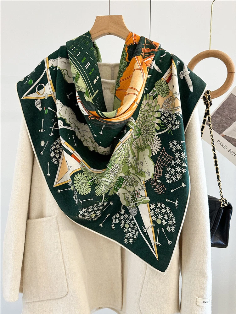 Faux Cashmere Large Rectangle Scarf Women Vintage Flower Shawl Winter 190*65cm