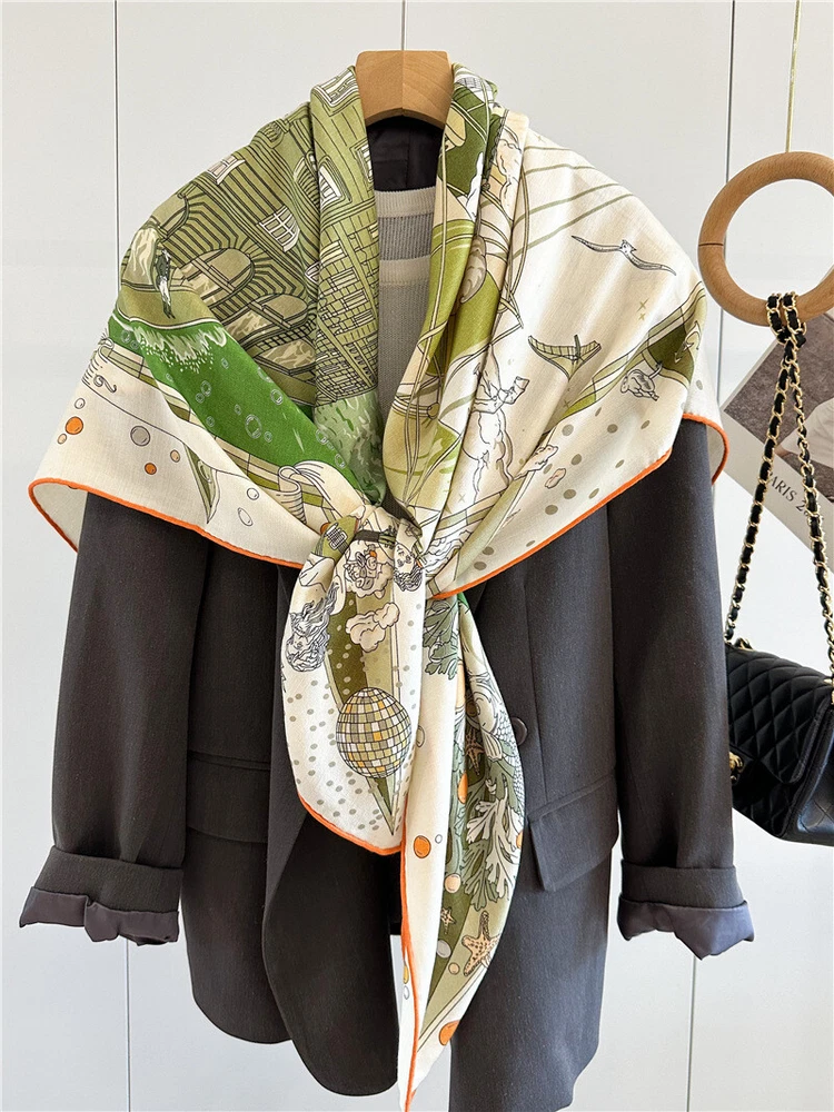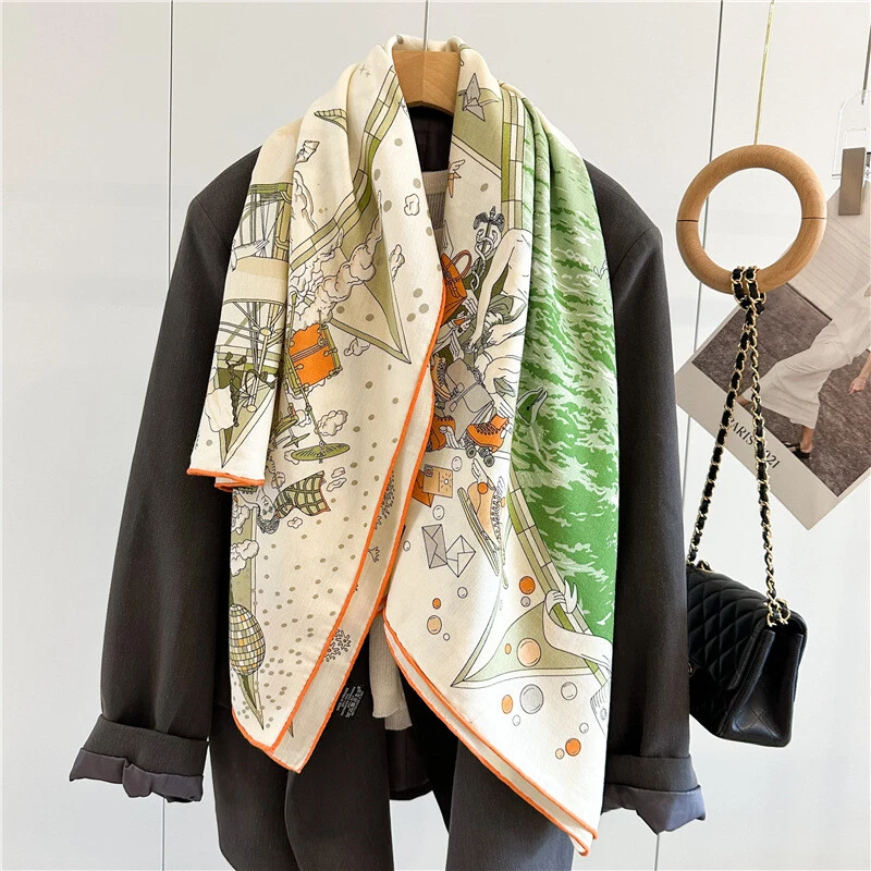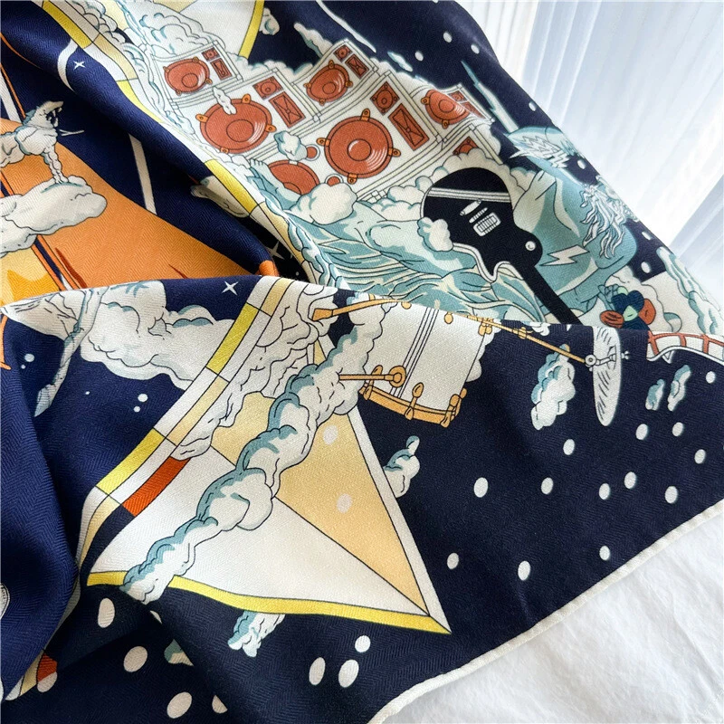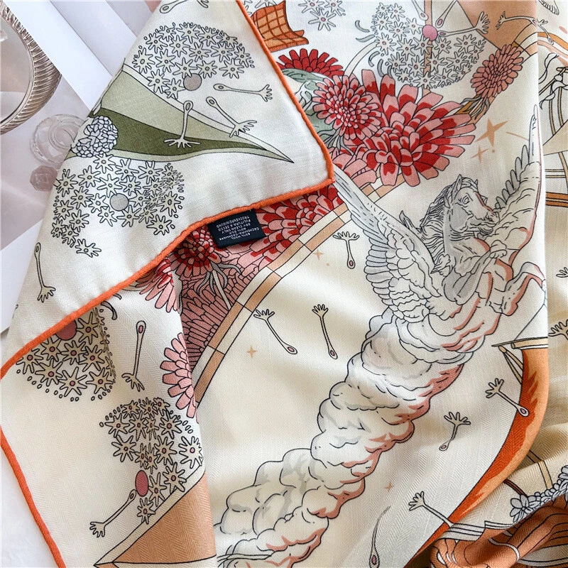 $ 12.81100% Pure Mulberry Silk Orange Horse Print Square Scarf 53cm Elegant Design