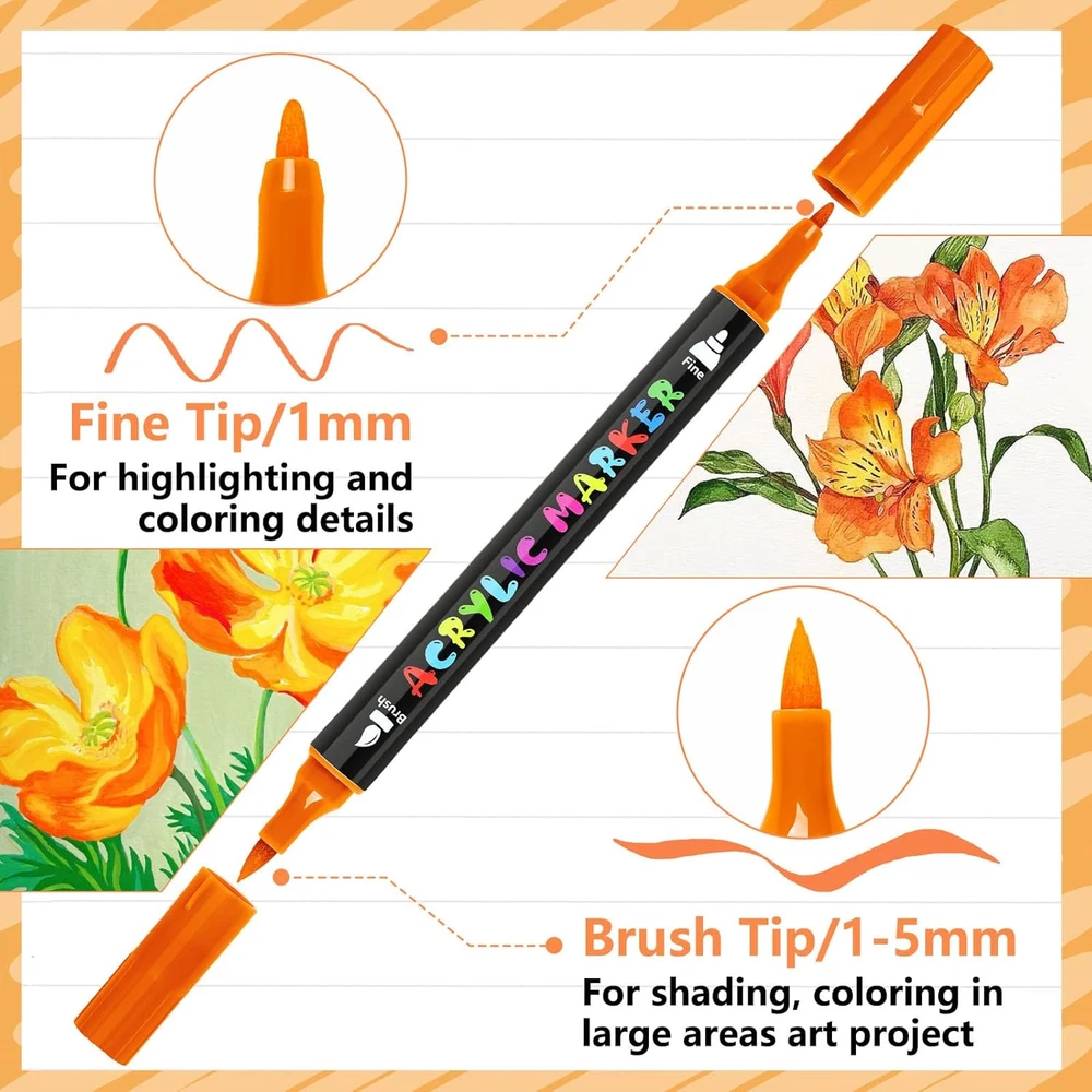 60 Colors Acrylic Paint Markers, Dual Tip Acrylic Paint Pens with Brush and Fine