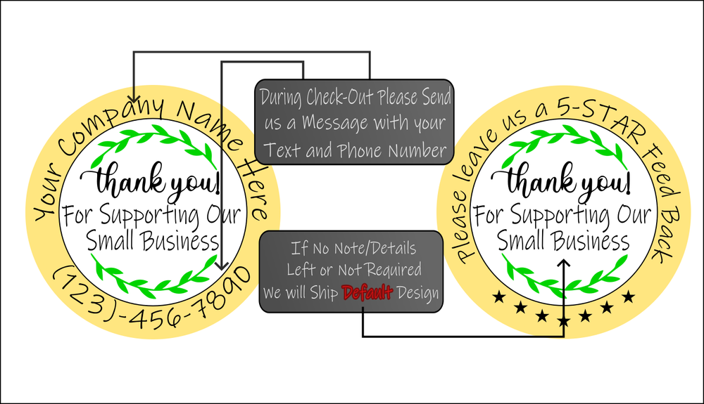 SIZE : 1.5 Inches Round Quantity : 60 Pcs Our "Thank You for Supporting Our Small Business" stickers are perfect for online sellers looking to add a personal touch to their packaging. Customizable: Add your business name, phone number, or personalized text. Note : If no personalization details are left at checkout or customization isn't required, stickers will ship with the default message: "Please leave us a 5-star feedback." Size: 1.5" round. Material: Premium vinyl with a durable laminated finish for waterproofing and UV protection . Crafted in Connecticut: Professionally printed using an offset printing press. Shipping: Ships from the USA with free shipping . Shipping Information To keep our prices affordable and include free shipping, all orders are sent via USPS First-Class Envelope with limited tracking . Elevate your thank-you messages with these 30 custom waterproof stickers, ideal for adding a personalized touch to your packaging or notes. Each sticker is a testament to quality and thoughtfulness, boasting a clean design that's both professional and friendly. Proudly made in the United States, these stickers reflect a commitment to craftsmanship, with each unit quantity ensuring your message stands out with clarity and style. Whether you're managing an e-commerce business or simply looking to add a special detail to your crafts, these Homemade brand stickers offer versatility and durability. The handmade aspect assures you of a unique product that is not only practical but also imbued with the care of a personal touch. These labels are perfect for expressing gratitude in a way that's both modern and memorable. eBay Listing
