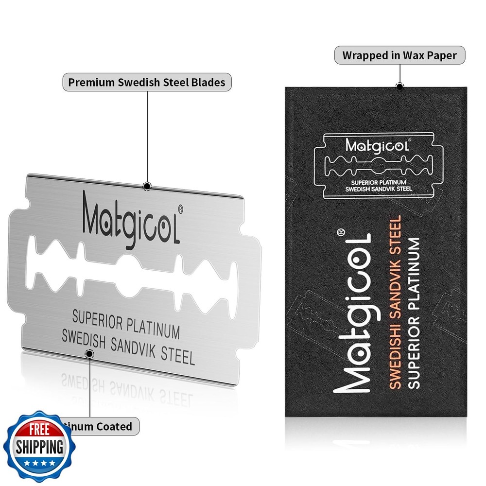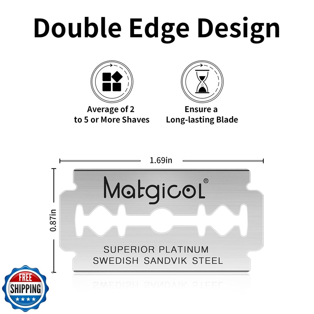 Double Edge Safety Razor Blades - 60 Count Premium Platinum Swedish Steel Blades for Men and Women’s Razors – Long-Lasting Precision Shaving Blades for Smooth, Comfortable and Close Shaves Features PREMIUM SWEDISH STEEL DURABILITY:Crafted from high-grade Swedish steel with a platinum coating, these blades deliver exceptional sharpness, smoothness, and long-lasting performance for professional-quality shaves 60-COUNT VALUE PACK:Stock up with this 60-blade pack, offering excellent value and ensuring you’ll always have a fresh blade ready for your grooming needs UNIVERSAL DOUBLE EDGE COMPATIBILITY:Designed to fit all standard double-edge safety razors, making it an effortless upgrade for your shaving routine without the need for new equipment GENTLE YET EFFECTIVE SHAVING:Achieve a precise, close shave with reduced irritation and fewer nicks, perfect for sensitive skin and suitable for both men and women HYGIENICALLY WRAPPED BLADES:Each blade is individually wrapped for safety, hygiene, and convenience, maintaining its sharpness until you’re ready to use it Shipping Free & Fast Shipping: We offer free shipping to most of the USA with a normal delivery time of 3-7 days. However, due to the current situation, additional delivery time (up to 3 weeks) may be required for some items. Alternative Carriers: We may use alternative carriers (e.g., USPS, FedEx, UPS) to ensure your package arrives safely and on time. Due to the use of multiple carriers, we are unable to provide a tracking number automatically. Handling Time: Orders are processed and shipped within 1-2 business days of receiving cleared payment. Shipping Restrictions: Shipping to Alaska, Hawaii, Puerto Rico, Guam, and other US territories may incur shipping charges or delivery restrictions. Please contact us before ordering, or your order can be refunded/cancelled. State Restrictions: Certain items may not be shipped to California due to state regulations. Contact for Tracking Updates: If you require tracking updates or have any concerns about the delivery of your order, please feel free to contact us, and we will be happy to assist you. Return Policy 30-Day Hassle-Free Returns: If you are not completely satisfied with your purchase, you can return the item for free within 30 days of receiving it for a full refund or exchange. Easy Return Process: Contact us, and we will provide you with a prepaid return shipping label and detailed instructions. No Restocking Fee: There are no restocking fees for returns. However, the buyer is responsible for return shipping costs if the return is not due to a seller"s error. Refund Processing: Refunds will be processed within 1 business day of receiving the returned item in its original condition. Feedback Your feedback is extremely important to us. We strive to provide the best products and customer service possible. If you are satisfied with your purchase, please take a moment to leave us a positive review. If you have any concerns or issues with your order, please contact us before leaving negative feedback. We are committed to resolving any problems and ensuring your satisfaction. Contact Us If you have any questions or concerns, please feel free to reach out to our customer support team. You can contact us through the eBay messaging system. We are available Monday to Friday, 9:00 am to 5:00 pm EST, and we will do our best to respond to your inquiry within 24 hours. Thank you for supporting our small family business!