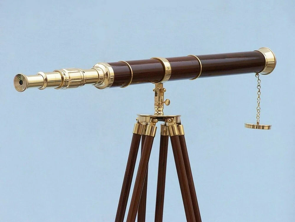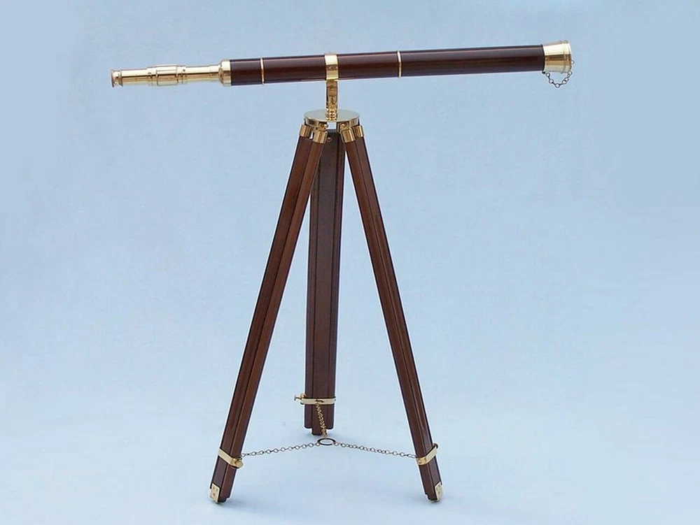 SIFAAT WORLD 60" Floor Standing Admirals Brass with Wood Fully Functional Telescope with Beautiful Wooden Tripod Stand (Replica) ; Nautical Home Decor Brand SIFAAT WORLD Water resistance level Not Water Resistant Focus type Center Focus About this item Handmade Retro Style Functional Brass with Wood TELESCOPE With Tripod Stand (Total Height With Tripod Stand i.e. TELESCOPE Mounted on Stand= 60 Inches approx.) Polished Brass Made Fully Functional TELESCOPE - Sturdy Wooden Height Adjustable Tripod. Protects The Objective Lens with Brass Metal Cap. Telescope Tube Length : 39 Inches approx , Height Of Tripod : 60 Inches Maximum approx . TELESCOPE Suitable For Home & Office, Balcony Decor, Decorative Prop, Hallway, Living Room and Many More. Shiny Polished Brass Finish - Classic Interior Designed by Our 20 Years Experienced INDIAN CRAFTSMEN. Focusing Is Accomplished by Adjusting the Eye Piece Ring On the TELESCOPE Tube With Upto 15x Magnification. Manufactured & Sold By SIFAAT WORLD from INDIA. This SIFAAT WORLD 60" Admiral's Floor Standing Brass with Wood Telescope is a Beautiful, 100% Brass, refractor telescope mounted on a wooden tripod. The perfect gift for the nautical explorer, t his telescope is a fully functioning nautical masterpiece that adds class and sophistication to any room. The main scope is solid polished brass encased in wood, which shines beautifully when placed in the sunlight. Focusing is accomplished by adjusting the eyepiece ring on the telescope tube, with up to 15x magnification. A removable brass cap, connected by a chain, protects the objective lens. The wooden tripod stand features smooth, polished round legs, each with solid brass fittings and a screw release to let you adjust the height. A solid brass chain holds the three wooden legs together to maintain the telescope's position. Dimensions : 32" Long x 25" Wide x 60" High 15X Magnification Polished Brass telescope body; Wood wrapped Glass optics for a clear view (not plastic lenses) Fully functional telescope focuses and magnifies Sturdy wooden tripod supports telescope when standing Some Special features of this Beautiful TELESCOPE are given below : 1. 15x Magnification gives Ultra Large Image Size. 2. Fully Functional Zoom-Able TELESCOPE For Distance Sight-Seeing. 3. Adjustable Height Of The Tripod Legs With Ease as your comfortability. 4. Beautiful Wooden Tripod Supports And Steadies, made of best quality wood & Leather. 5. Perfect For Collectible Gifts Ideas. 6. Made by Our 20 Years Experienced INDIAN CRAFTSMEN . 7. Focusing Is Accomplished by Adjusting the Eye Piece Ring On the TELESCOPE Tube. 8. Long Lasting , HANDMADE ITEM- Perfect For MOTHER'S day, FATHER'S day, Christmas GIFTS, etc. 9. Best for gift purpose to your loved ones !!! 10. Made in INDIA, Loved By the WORLD. Sold & Manufactured By SIFAAT WORLD From INDIA .
