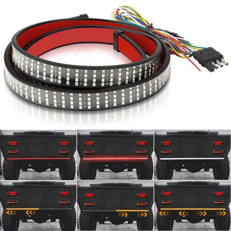 Store Categories Store Categories Lights Projector Lights License Plate Lights Interior Lights Warning Lights Others Sun Shades Organizers Gear Shift Steering Wheels Seats Tools Stickers Decors Other 60" For Chevy Silverado Cab 4 Rows 6Functions LED Strip Rear Tailgate Lights Bar Feature: Super Brightness: The new 60 Inch four row LED strip contains 624 2835smd led beads, and its lumen and output are three times brighter than ordinary tailgate lamps. The super bright three color design significantly improves the driver's safety on the road. Widely Used: The operating voltage is 12V, and the 60 '' bar is suitable for amber steering vehicles, such as most pickup trucks, off-road vehicles, etc. Multiple Functions: Driving light / brake light - all red LEDs are on (different brightness); Left rear turn signal lamp - left AMBER LED is on; Right rear turn signal lamp - right AMBER LED is on; Reversing lamp - white LED on. Wake up everyone behind you and reduce accidents in bad weather. High Quality: Made of fully sealed flexible silicone shell with IP68 waterproof grade , the durable tailgate lamp can work perfectly in rainy or snowy days. Epoxy resin process design, moisture resistance, service life of more than 50000 hours, on-line fuse short-circuit protection. Easy To Install: "No drilling" installation system. The standard 4-pin flat plug and self-adhesive tape with good conductivity can be easily pasted on any smooth surface, and the installation is simple without screws. Easy plug and play installation. UPGRADED 6-Function : Running mode, all red LEDs light up(low beam) Brake mode, all Red LEDs light up(high beam) Reverse mode, all White LEDs light up Turn left mode, left Amber LEDs sequentially light up Turn right mode, right Amber LEDs sequentially light up Hazard Emergency Double Flash Mode:left & Right indicator sequentially flowing from center to both sides. Specification: Type: Tail light strip Voltage: DC 12V LED power: 30W Shell material: PVC Shell color: Black Lamp bead type: 2835 light source Number of bulbs: 624pcs (four rows) Bulb color: white, red, yellow Waterproof grade: IP68 Length: 60inch/152cm Service life: 50000 hours Package Included: 1 X LED Tail light strip Note : 1. This light strip the single message type that will not let turn signals work when brakes are applied . 2.The only thing you can tap from the 7pin trailerconnector is the ground and reverse, the other's will trigger 'trailer connected.' 3.lt doesn't matter what vehicle or light bar it has. All 2015+ Fords will detect when a trailer is plugged into the wiring harness. Regardless if it's the 4 or 7pin. It is why any additional lights on the rear have to be triggered by the tail light circuit. Payment We can accept payment of Paypal only. Payment should be made within 7 days after purchasing. (No payment orders eBay system will automatically open unpaid dispute, and this is not good to your account.) Shipping Item will be shipped out within 48 hours upon receipt of your cleared payment. We can not ship on Sundays and other public holidays. International Buyers Please Note: 1, Import duties, taxes and charges are not included in the item price or shipping charges. These charges are the buyer's responsibility. 2, Please check with your countrys customs office to determine what these additional costs will be prior to bidding/buying. Please make sure your address in paypal is correct. we will only follow your address listed in the Paypal payment for the shipment. Combine shipment is not allowed. If you want to combine all the items together, you should still pay for all of the shipping, insurance and handling fee! Returns We offer you 30 days return. The buyer is responsible for return shipping including a result of customer error or wrong item bought: 1) If you received an incorrect, damaged, defective, or item not as described, contact us for a partial/full refund or replacement on our cost. 2) If you want to return the item, please contact us within 60 days after package received. Return products must also be in its original condition: including box, packaging and all other accessories. Feedback 1.We are appreciated your business and to improve our customer service and our commitment to quality. 2.We will leave a positive feedback immediately after payment is received. We appreciate a positive feedback as much as you do. 3.If for some reason there is any issue with the purchase, please contact us prior to leaving feedback, and we will be glad to work with you to have it resolved. Contact Us We do appreciate your purchase from our store. If you are satisfied with the item as well as our service, please kindly leave us a Positive Feedback to help develop our business. Thank you in advance. Our office hours are MONDAY - FRIDAY 9:00PM - 18:00PM PST , we do not answer any E-mails or eBay messages on weekend. All E-mail or eBay message take us around 24 hours to respond. Thanks a lot. Store Categories Store Categories Car Sunshade Organizers Gear Shift Steering Wheels Seats Tools Stickers For BENZ For BMW Car Door Lights License Plate Light Other 60" For Chevy Silverado Cab 4 Rows 6Functions LED Strip Rear Tailgate Lights Bar Feature: Super Brightness: The new 60 Inch four row LED strip contains 624 2835smd led beads, and its lumen and output are three times brighter than ordinary tailgate lamps. The super bright three color design significantly improves the driver's safety on the road. Widely Used: The operating voltage is 12V, and the 60 '' bar is suitable for amber steering vehicles, such as most pickup trucks, off-road vehicles, etc. Multiple Functions: Driving light / brake light - all red LEDs are on (different brightness); Left rear turn signal lamp - left AMBER LED is on; Right rear turn signal lamp - right AMBER LED is on; Reversing lamp - white LED on. Wake up everyone behind you and reduce accidents in bad weather. High Quality: Made of fully sealed flexible silicone shell with IP68 waterproof grade , 