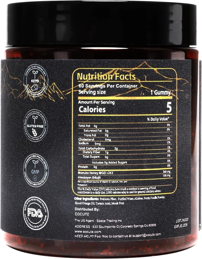 gtin13: Does not apply Expiration Date: 2 years Active Ingredients: Shilajit MPN: Does not apply Main Purpose: Immune Support Number of Pills: 60 UPC: Does not apply Formulation: Gummy Brand: Unbranded Department: Men, Unisex, Women