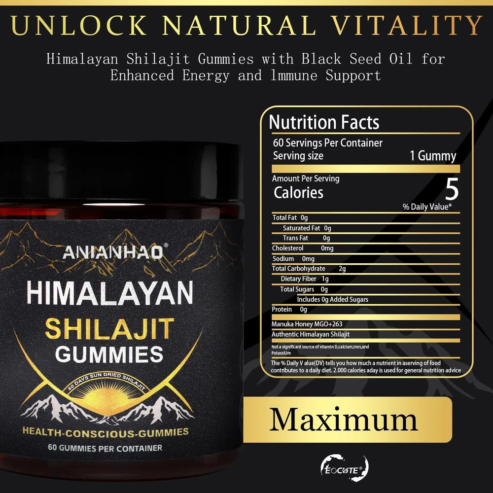 Specification: Quantity: 60 pcs Gummies Shelf Life: 2 years Storage:Store in a cool, dry place. About Shilajit: Lab-Tested for Purity: Our Shilajit is sourced from the pristine Himalayas, ensuring the highest quality and potency. Rich in Minerals & Acids: Packed with essential trace minerals, fulvic and humic acids, and amino acids, known for their anti-inflammatory and immune-boosting properties. Boost performance, stamina, muscle strength, and cognitive function – Easy to absorb and nourish your body for your overall wellness REDEFINE YOUR WELL-BEING : Have you been feeling drained easily in daily life? Shilajit resin will provide you a perfect solution by aiding in energy, metabolism & immune system. Avoiding chronic fatigue, improving mind, memory, cognitive abilities, digestion, and hormonal balance for men and women Travel-Friendly: Each bottle contains 60 gummies, perfect for daily use at home or on the go. Specification: Quantity: 60 pcs Gummies Shelf Life: 2 years Storage:Store in a cool, dry place. Note: - Do not exceed recommended dosage. - Not formulated for use in Children. - Do not use if imprinted seal under cap is broken or missing. - Store tightly closed, in a cool, dry place away from heat and light. - Keep out of the reach of children. Payment Delivery details Terms of sales About us Contact us Payment USE ebay payments .many thanks for your cooperation Delivery details Upon receipt of the payment, All orders will be dispatched within 24 hours by royalmail 1st service. UK:2-3working days Please confirm your shipping adress when pay for item. Appreciated for your understanding and cooperaton . Terms of sales We respect your privacy and as such all items will be posted to you in plain packaging, with no clue as to what is inside. Only your name and address will be on the front of the package and there will be no invoice inside. About us Return Accepted Condition of sales payment should be received within 3 days from the end of the auction All non-pay bidder will be reported. Products without any quality?problem can't be refund. · Products with quality problme in 30 days can be returned and refund. Not accept return when you got the item beyond 30 days. If there any quality problem pls kindly contact us within 7 days. We will try our best to solve the problem for you. Notice: Please keep it in good condition and customer need to pay for the return shipment. Contact us If you have any problems,Please contact us feel free. To ensure a swift response, please use ebay mail system to send messages, Please visit our shop for hundreds of funcky posters When delivery is delayed or items are damaged during delivery, please email us first. We are here to help. We always reply your emails within 48 business hours . If you do not hear from us after 48 hours, please first check your email fiter and junk mail box. Many times, this is the reason that prevents our reply from reaching you. You may also need to email us via ebay contact member page because we may also have filtered your incoming emails.