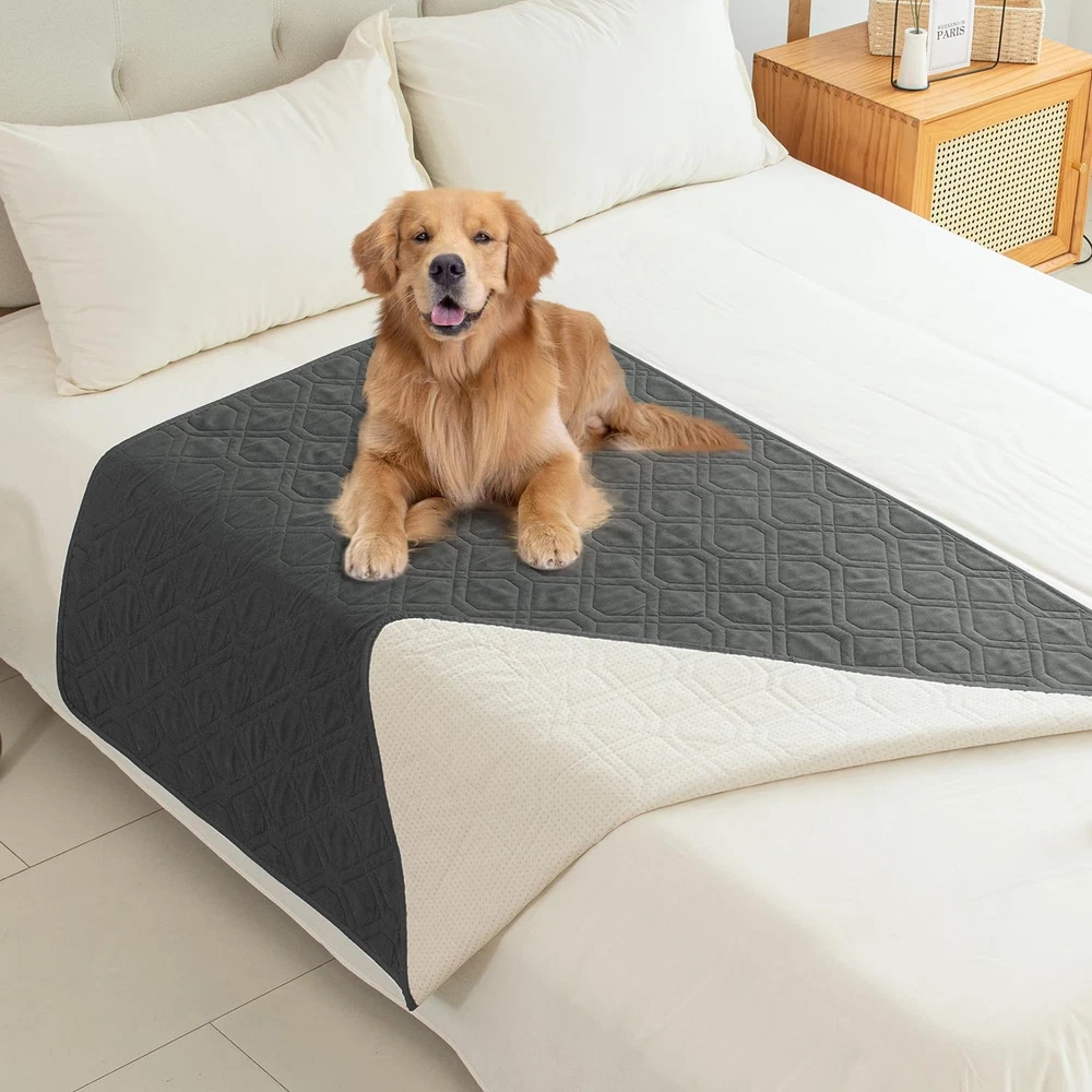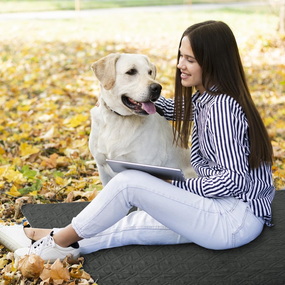 Protect your bed or furniture from pets, liquids, food and stains, wear and tear, damp and dull smells WATERPROOF MATERIAL - The compound waterproof layer in the middle of the fabric can achieve 100% waterproof, offers strength and durability even after machine washing MULTI-USE - This furniture cover can be used on sofas, beds, cars, picnics, tables or chairs, 60inches wide and 82 inches long STAIN RESISTANT AND MULTI PURPOSE - It will save your furniture from puppy slobber and bite marks, kids mischief and spills. To protect your bed/sofa from the pet's scratching post. It can be used as a couch cover too ANTI-SLIP - The anti slip back grip on the bottom of the cover will avoid sliding EASY CARE - It is easy to clean the pets' hairs with the brush which is included in the package or machine wash if you need