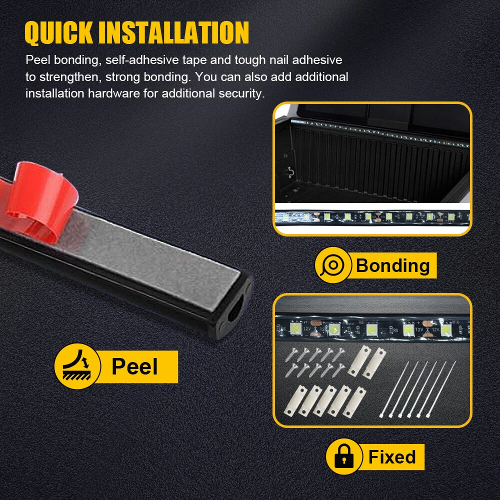 Specifications: Light strip length: 1.5m/60" Lamp color: white LED Type: 5050 SMD Beads quantity: 90 LED per piece Waterproof rating: IP67 Voltage: 12V Service life: 50000+ hours Scope of application: Can be widely used for RV Awning Light, truck bed light, step bar led light, side door light etc. Features: *Impressive brightness The light strips cpmtain 5050-SMD LED Chips with 270 pcs and output 3900LM and 6000K super bright light to illuminate the entire truck. *Quick installation Euipped with self-adhesive tape and tough nail adhesive to paste firmly, it also can add the included mounting hardware for extra security. 60" LED Light Strip Bar Rear Tailgate Truck Reverse Brake Stop Turn Signal Truck Specifications: Light strip length: 1.5m/60" Lamp color: white LED Type: 5050 SMD Beads quantity: 90 LED per piece Waterproof rating: IP67 Voltage: 12V Service life: 50000+ hours Scope of application: Can be widely used for RV Awning Light, truck bed light, step bar led light, side door light etc. Features: *Impressive brightness The light strips cpmtain 5050-SMD LED Chips with 270 pcs and output 3900LM and 6000K super bright light to illuminate the entire truck. *Quick installation Euipped with self-adhesive tape and tough nail adhesive to paste firmly, it also can add the included mounting hardware for extra security. *Safe connection Comes with breakaway cable, on/off switch,extension cable, mounting hardware for all your wiring needs and ensuring the security of your wiring when driving on the road. *Durable design The light strips are well protected from rain drops, dirt and sand for long service life and high durability. *All tested before shipment All products were tested for performance and to ensure the accurate parameter for your vehicle. Packaging include: 3x 60" LED Strip Light Item Specifics Brand Unbranded Type tailgate light Placement on Vehicle Rear Light Color Cold White Material rubber LED Universal Fitment Yes Items Included 3x 60" LED Strip Light Manufacturer Warranty 1 Year Size As shown in the picture Fitment Type Direct Replacement Waterproof rate IP65 Features Waterproof Warranty 1 Year Lighting Technology LED Service life 50000 hours Beads quantity 90 LED per piece LED type 90-5050-SMD Voltage 12v Lumens 3000 lm Light strip length 1.5m/60" Housing Color Black Application RV Awning Light, bed light, step bar led light, door light etc. Performance Part Yes Lens Color Clear Color Temperature 6000K Functions turn signal/brake light/running light/reversing light Features 1 Easy Installation, High Brightness Interchange Part Number 1 Pickup Truck Bed Cargo Van Load Work Area Boat Interchange Part Number 2 Super Bright 5050 SMD 90 pcs Total LED Fit for 1 Chevy Silverado 1500 2500 3500 Tahoe Colorado Suburban Fit for 2 Avalanche Dodge Ram 1500 2500 3500 4500 5500 Fit for 3 Nissan Frontier Titan Honda Ridgeline Fit for 4 Toyota Tundra Tacoma Ford Edge Expedition Fit for 5 Ford F150 F250 F350 F450 F550 Ranger Explorer Fit for 6 GMC Sierra 1500 2500 3500 Yukon XL Canyon Acadia Other Part Number Truck Cargo Bed Strip Bar Lighting Kit Assembly Suitable For Stop Light, Rear Turn Signal Back Up Light, Brake Light Suitable For 1 Center Brake Combination Off-Road Parking Reverse Warranty 2 Year Payment 1. Instant PayPal payment is the preferred method of payment. We also accept payment via PayPal, DebitCard, Visa, MasterCard, Discover. 2. Before payment,Please keep the consistency of Paypal address and ebay address. 3. Quantity orders are welcome! Shipping 1. All items will be shipped in 24 hours after receiving your payment . 2. We ship this item to US only via USPS first class mail. It usually takes 3-6 working days to deliver. Returns 1. We offer free return & money back guarantee. If you are not satisfied with your purchase for any reasons, you can return the item for refund or replacement/exchange. All returns must include the original packaging. (Please refer to our return policy for details.) 2. If you don't return goods within 60 days from date of purchase, your right to cancel will be revoked. Any items damaged because of incorrect installation will not be refunded. Please contact us for return or troubleshooting help prior to returning any products. Contact Us 1. Negative feedback will not help resolve any problems you have, please contact us via eBay messages before leaving negative feedback, our customer service will make best effort to help you with the issues. 2. We maintain high standards of excellenceand strive for 100% customer satisfaction! Feedback is very important to us. We request that you contact us immediately Before you give us neutral or negative feedback, so that we can satisfactorily address your concerns. FAQ 1. Can you tell me when my order will be shipped? Actually we will ship the item within 1 business day after receiving orders. But USPS need to take longer time to update tracking info and arrange delivery during the challenging time for now. If your order was not shipped more than 3 business days, please contact us with your order number to get quick support. 2. My item has not arrived, what's taking so long? Sometimes items take longer than expected, especially if it's going far or to rural area. Check with your post office to see if your item has been held up. Sometimes USPS will not update a tracking number until it has arrived at its destination. If your item still has not arrived after a few days, let us know so we can double check for you and help solve it asap. 3. Do you ship to Canada, United Kingdom, Australia, etc.? Unfortunately, we could only ship to United States (Domestic shipment) at the moment. 4. I bought the wrong items/ the items were not compatible with my vehicle. Please contact us via ebay message to get quick support. DESCRIPTION PAYMENT SHIPPING RETURN POLICY CONTACT US Hot Item 4pcs Dually LED Bed Side Marker Light For GMC Sierra 1999-2014 2500HD 3500HD USD 27.09 Rear Bumper Reflector fog Light Lamp Left For Lexus 2004-2009 R