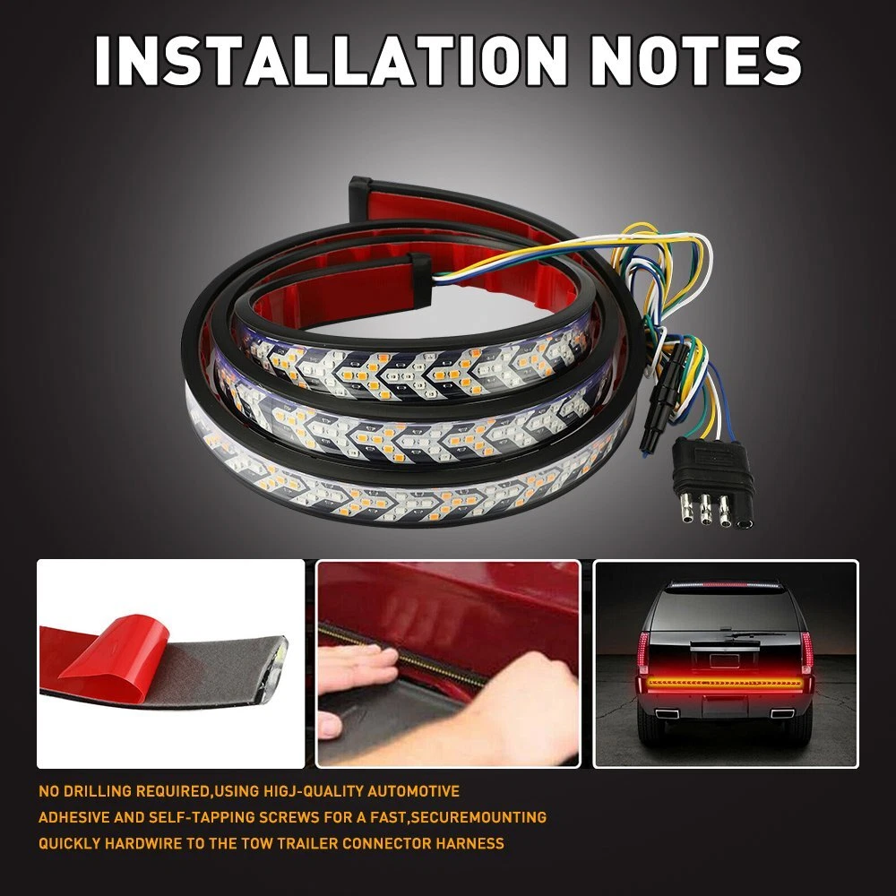 Product Specification Type: Truck Tailgate Strip Bar Shell Material: PVC LED Color: Red/Yellow Red For Brake Light Yellow For Turn Signal Light Light Source Power: 12W Current: 0.6A Luminous Flux: 1200LM Use Voltage: DC12V Waterproof Rate: IP67 Light Length: 60inch / approx. 150cm Package Included: 1x 60inch Truck Tailgate LED Light Strip Bar Product Feature FULL FUNCTIONS: The new style tailgate light features full functions of the brake, flowing turn signal, double flash, and brake light. 60" LED Strip Tailgate Light Bar Reverse Brake Signal For Chevy Ford Dodge Truck Product Specification Type: Truck Tailgate Strip Bar Shell Material: PVC LED Color: Red/Yellow Red For Brake Light Yellow For Turn Signal Light Light Source Power: 12W Current: 0.6A Luminous Flux: 1200LM Use Voltage: DC12V Waterproof Rate: IP67 Light Length: 60inch / approx. 150cm Package Included: 1x 60inch Truck Tailgate LED Light Strip Bar Product Feature FULL FUNCTIONS: The new style tailgate light features full functions of the brake, flowing turn signal, double flash, and brake light. BRIGHT LIGHTS: With 528pcs(276Pcs Red+252Pcs Yellow)2835 SMD led chips to give out the super-bright beam. Adds clear visibility to the rear drivers, better-ensuring safe traffic on roads. PREMIUM QUALITY: Adopts fully sealed silicone housing with IP67 waterproof rate, works well whatever in rainy or snowy days. With inline fuse for short circuit protection, heavy-duty, and super durable. EASY TO INSTALL LED Tailgate Light Bar: No drilling required, using high-quality automotive adhesive and self-tapping screws for a fast, secure mounting, quickly hardwire to the tow trailer connector harness. UNIVERSAL FITMENT: This flexible light strip features 60 inches long, widely suited for almost all 12V operated at DC 12V wide voltage, Pickup Trucks, Trailers, Cars, SUV, RV, VAN, boat anchor, etc. Warranty: All of our frames comes with a no question 60 days warranty if any thing happen we will change or refund you 100% of your purchase price. we want to make sure that all our customers are satisfied. We are available 24 hours a day 7 days a week to assist all of our customers.Any Question Please contact us firstly. Item Specifics Brand OXILAM Manufacturer Part Number 528pcs LED light To Fit Red For Brake Light,Yellow For Turn Signal Light Luminous Flux 1200LM Number of Bulbs 1 Bulb Color Red Material PVC Power Source 12W Type Truck Tailgate Strip Bar Waterproof Rate IP67 Placement on Vehicle rear Lighting Technology LED Fit For Pickup Trucks, Trailers, Cars, SUV, RV, VAN, boat anchor LED Color Red/Yellow Payment Returns DESCRIPTION PAYMENT SHIPPING RETURN POLICY CONTACT US Shop Category Store Home LED Headlight ◈ H4 ◈ H13 LED FogLight ◈ H10 / 9145 / 9140 LED Reverse Light ◈ T15/921/W16W LED Side Marker Light Car Parts & Accessories Tail Light assemblies Other Hot Item Picture New List Item H11 H8 H9 LED Fog Headlight Light Bulbs Kit Golden Yellow High Low Beam 2/6//10X USD 27.99 AUXITO Pair SMD T10 LED W5W 194 BRIGHT RED INTERIOR DOME WEDGE LIGHT BULB Canbus USD 9.99 AUXITO H4 LED Headlight High Bulb Low Beam Super Bright White PlugPlay 1-10Set USD 27.99 AUXITO H7 LED Headlight High Bulbs Low Beam Plug&Play White CANBUS 1-10Set USD 27.99 Amber 7440 LED Signal Turn Light Anti Lamps Hyper Flash Canbus Error Free 2/10x USD 18.99 Help & Info Payment Policy Shipping Policy Return Policy FAQ About Us 60" LED Strip Tailgate Light Bar Reverse Brake Signal For Chevy Ford Dodge Truck Product Specification Type: Truck Tailgate Strip Bar Shell Material: PVC LED Color: Red/Yellow Red For Brake Light Yellow For Turn Signal Light Light Source Power: 12W Current: 0.6A Luminous Flux: 1200LM Use Voltage: DC12V Waterproof Rate: IP67 Light Length: 60inch / approx. 150cm Package Included: 1x 60inch Truck Tailgate LED Light Strip Bar Product Feature FULL FUNCTIONS: The new style tailgate light features full functions of the brake, flowing turn signal, double flash, and brake light. BRIGHT LIGHTS: With 528pcs(276Pcs Red+252Pcs Yellow)2835 SMD led chips to give out the super-bright beam. Adds clear visibility to the rear drivers, better-ensuring safe traffic on roads. PREMIUM QUALITY: Adopts fully sealed silicone housing with IP67 waterproof rate, works well whatever in rainy or snowy days. With inline fuse for short circuit protection, heavy-duty, and super durable. EASY TO INSTALL LED Tailgate Light Bar: No drilling required, using high-quality automotive adhesive and self-tapping screws for a fast, secure mounting, quickly hardwire to the tow trailer connector harness. UNIVERSAL FITMENT: This flexible light strip features 60 inches long, widely suited for almost all 12V operated at DC 12V wide voltage, Pickup Trucks, Trailers, Cars, SUV, RV, VAN, boat anchor, etc. Warranty: All of our frames comes with a no question 60 days warranty if any thing happen we will change or refund you 100% of your purchase price. we want to make sure that all our customers are satisfied. We are available 24 hours a day 7 days a week to assist all of our customers.Any Question Please contact us firstly. Payment Returns All rights reserved. On Feb 6, 2025 at 17:14:55 PST, seller added the following information: