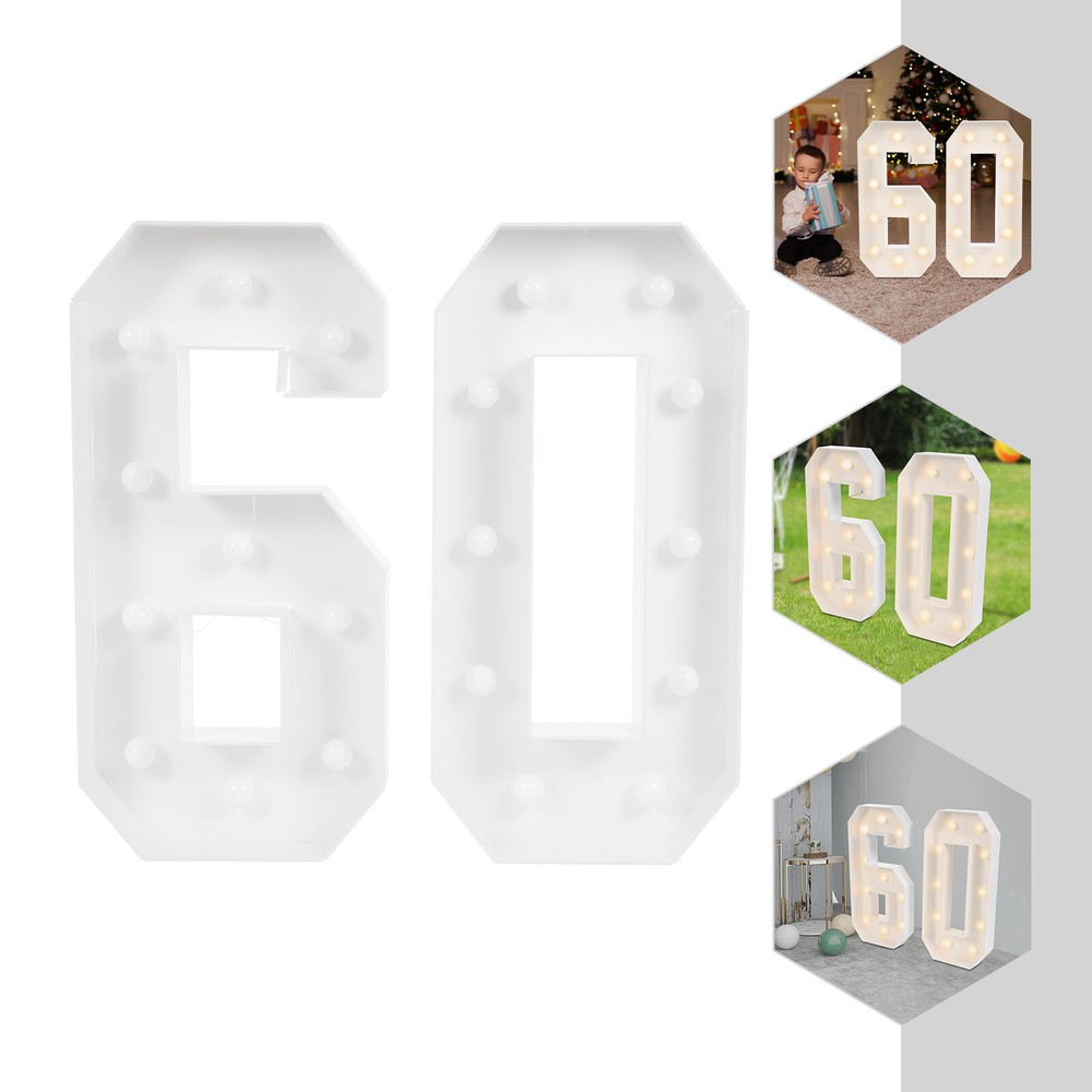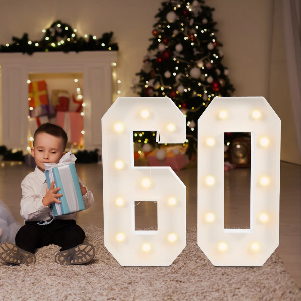 60 Light Up Numbers, 60th Birthday Party Decoration Light Up Numbers NEW Description Eager to add a touch of extraordinary style to your birth celebration? These light-up numbers combine light and numbers to create a favorable atmosphere. It is not only a witness to time, but also an engraver of emotions and memories, tailor-made for your birthday party or anniversary. Use it at your birthday party or anniversary event, it will surely impress your guests and become an unforgettable memory! Key Features Build to Last : This product is mainly made of KT board with a machine cutting process, which is hard, abrasion, and corrosion-resistant to ensure long-term use. Excellent Light Source : 20 LED bulbs in warm colors with a color temperature of 2000-3000K not only give a warm and bright glow but are also energy-saving and create a great atmosphere. Battery Powered : Each digit is powered by 3 AA batteries (not included) and has a switch on its battery compartment that can be used to control the light, which can be turned on/switched off when needed for special occasions. Great Decoration : These numbers stand at 39.37in tall and come with a white number color and warm light color, presenting a retro style. It can make your birthday or anniversary party more beautiful and eye-catching. When the light is turned on, it becomes a number ornament. Great Gift : Thanks to its beauty and practicality, you can bring this product home to yourself, your lovers, or your family to enjoy a happy 60th birthday party. Personalize Your Backdrop : You can use balloons, flowers, or other decorations to decorate this product, creating a unique backdrop. Easy to Assemble : The frames are pre-cut, you just need to use double-sided tape to make them into 60 shapes and then put the LED bulbs into them, which is convenient and easy. Easy to Carry and Store : Its lightweight (2.43lbs) and detachable design allow you to take it around and it can be stored easily when it is not in use. Quality Service : We stand behind all our guests and look forward to assisting you with your purchase. It is our pleasure to answer your confusion and questions. The end of the story between us is not "we sell and you buy". Details Wide Bottom : The wide bottom makes the force area large, making the overall stability of the product good, and not easy to tip over. Smooth Edges : They not only enhance the aesthetics of the product but also improve safety during installation and use. Application It is suitable for birthday parties, anniversaries, and other celebration activities. Specifications Color: White Material: KT Board Process: Machine Cutting Style: Vintage Indoor/Outdoor Usage: Indoor Assembly Required: Yes Mounting Type: Floor Standing Power Source: Battery Powered EU Energy Label Efficiency Labeling Class: A++to E Efficiency: E Battery Type: 6* AA Batteries(Not Included) Light Source: 20* LED Bulbs(Included) Light Color: Warm Color Temperature: 2000-3000K Product Height: 100cm/39.37in Package Size: 41*25*19cm/16.14*9.84*7.48in Gross Weight: 1.25kg/2.76lbs Net Weight: 1.1kg/2.43lbs Package Included 1 Pair* 60 Light Up Numbers 2* Double-sided Tapes 2* Battery Boxes 20* LED Bulbs 1* English Manual Other Accessories for Assembly Notes Please do not use it in a high-temperature environment. Please note that batteries are not included in this product. Please read the instructions carefully and take note of the safety precautions contained therein. Please allow the slight color difference caused by the shooting light and the 1-3 cm error due to manual measurement, and make sure you do not mind before ordering. Payment Delivery details Terms of sales About us Contact us Payment We accept ebay payment 。 Fees such as import duties, taxes are not included in the item price or shipping costs. These charges are the buyer's responsibility. Delivery details Shipping: 2-9 working days to: USA Terms of sales We maintain high standards of excellence and strive for hundred percent customer satisfaction. Feedback is very important to us. We hope that you contact us immediately before you give neutral or negative feedback, so that we can address your concerns. It is impossible to address issues if we do not know about them! About us Your satis faction is our ultimate goal. We work hard to earn your trust and future business. Our certified technicians have tested each item before shipping. The unit comes with 1 year limited warranty on all manufacturing defects. a) If you receive a defective item, you may return it or ask for a discount. Please contact us within 14 days after you receive the package. b) What you returned must be intact and in its original packaging as re? u. Customer is responsible for shipping costs of the returned item. c) We will cover the cost of shipping back t with the shipping rate indicated in the registration page. We will send you a new unit or refund the full payment you paid. Thank you. Contact us Business Hour Business Hour: Monday To Friday: 8:30 AM to 5:00 PM (Beijing China time) Due to time zones, our reply to your questions may not be immediately. But within above working time, we will reply your email within 24 hours. If it's non-workdays, please kindly be patient and wait till Monday. Please contact us with ebay message. Please feel free to contact us if you have any questions. Monday To Friday: 8:30 AM to 5:00 PM (Beijing China time) Due to time zones, our reply to your questions may not be immediately. But within above working time, we will reply your email within 24 hours. If it's non-workdays, please kindly be patient and wait till Monday. Please contact us with ebay message. Please feel free to contact us if you have any questions. On Dec 25, 2025 at 21:49:58 PST, seller added the following information: