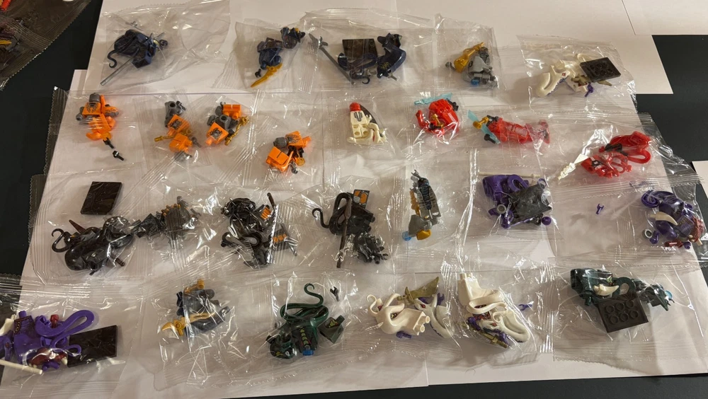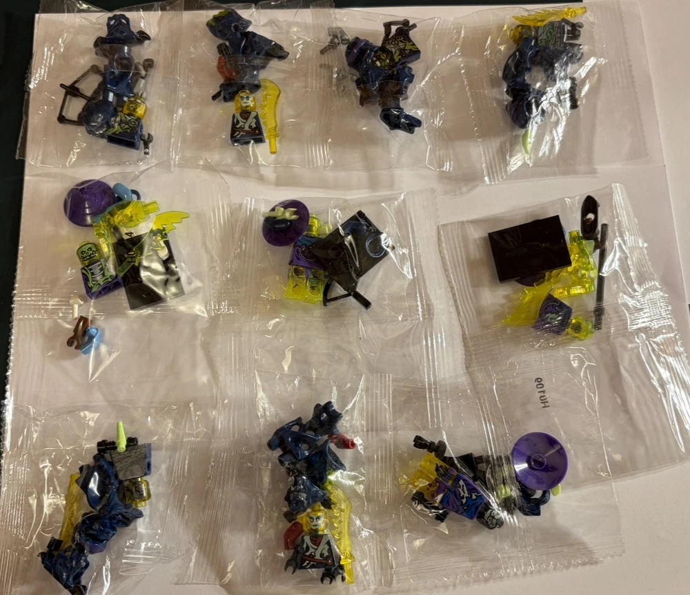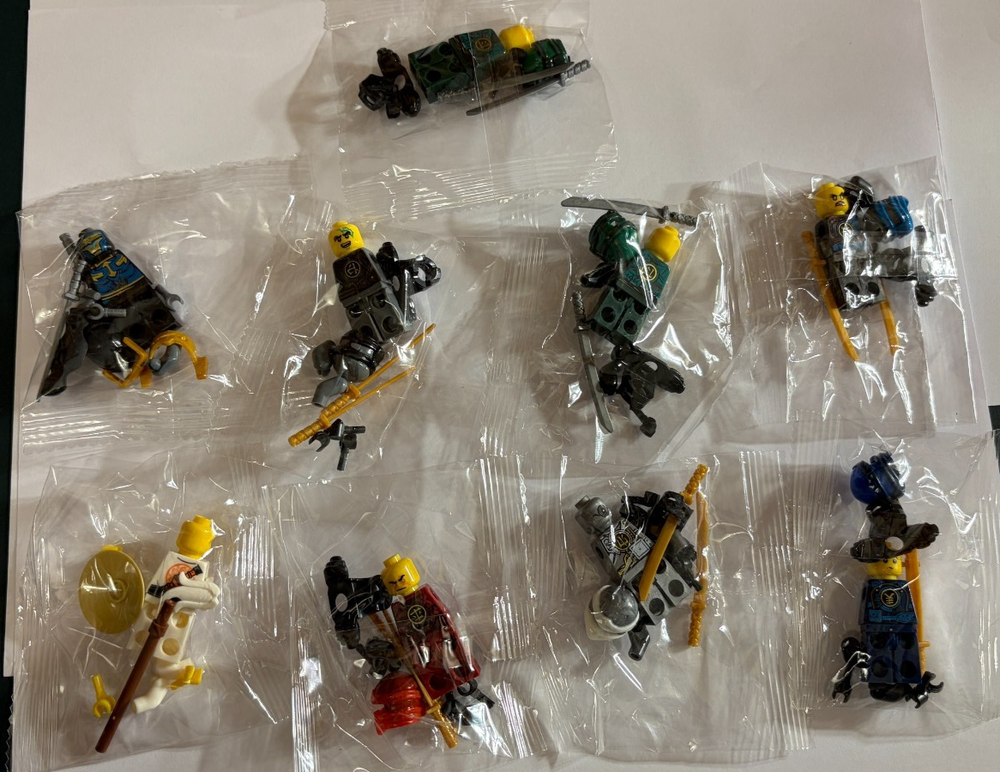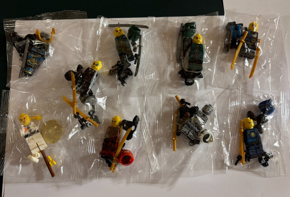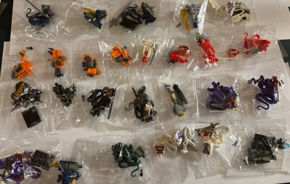 Massive Bundle of 60+ Non-genuine Lego Ninjago Minifigures. Please note that these are not genuine lego minifigures. There is a mix of figures from Ninjago including: Ninjas Ghosts Serpentine Skeletons Miscellaneous others All highlighted as per the images. In case you have any other questions please feel free to ask!