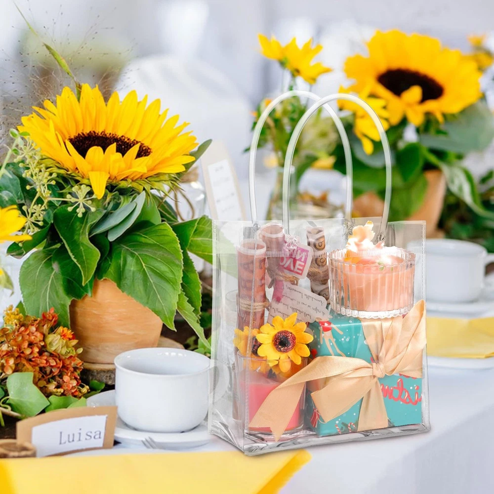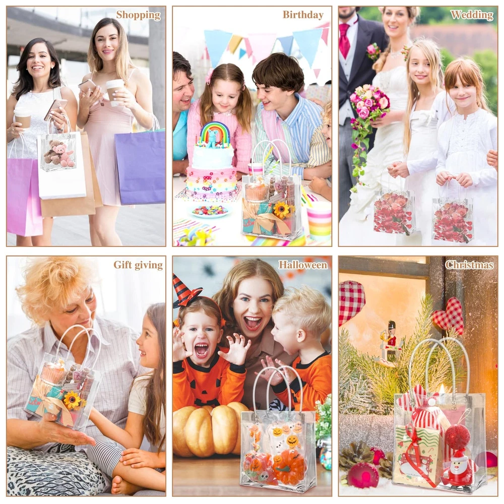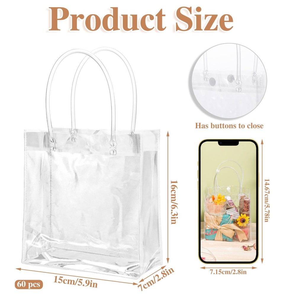 60 Pack Clear Gift Bags with Handle 6.3x5.9x2.8 Inches Small Bulk Party Favor Bags