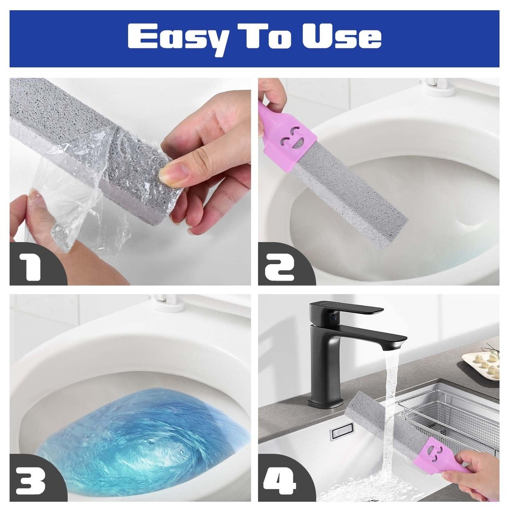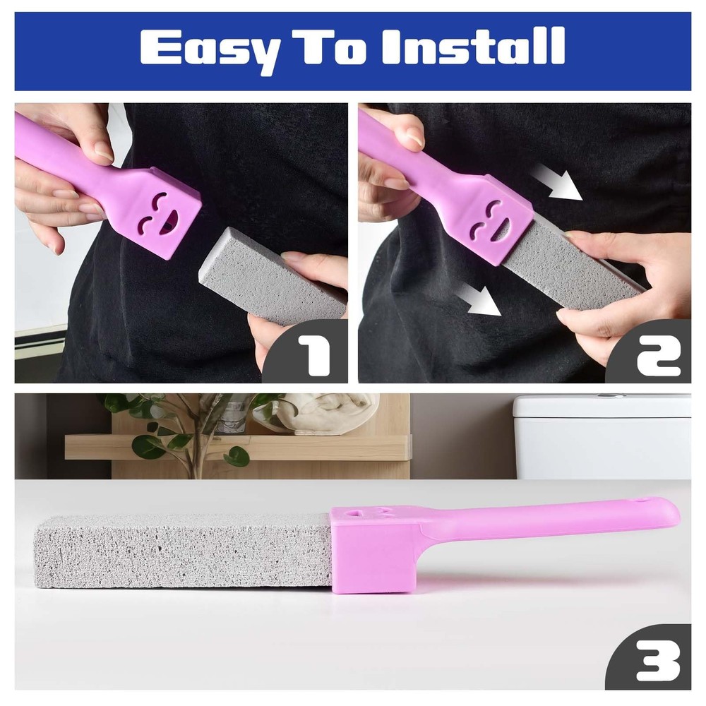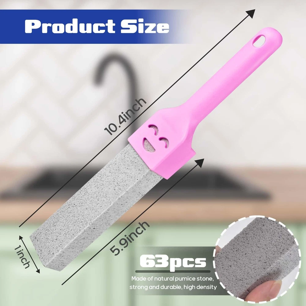 Perfect Size Each pumice stick is about 1.4 x 1 x 5.9 Inch, perfect for your palm, making it easier and more comfortable to clean; perfect size to help you clean edges and gaps for easy access, no more dead ends. Easy To Use Wet the pumice stone and gently press it on the toilet in a straight motion, and your toilet will be as clean as new. Precautions Soak the area to be cleaned and the gray pumice before cleaning, so that the pumice has a more powerful cleaning function. Convenient and Effective: Pumice Toilet Bowl Cleaner is the perfect size to easily clean stains and hard water rings from your toilet. It can also be polished for a sharper look so you can clean tight corners that other cleaning products can't reach High Quality Material: It is made of natural pumice stone, delicate and strong, with high density. It is preferred over ordinary toilet brush and cleansers as the most effective lean toilet. Size: 5.9” L x 1” W x 1.4” H Multiple Functions: Our pumice stone for cleaning can help you quickly and easily remove hard water ring in toilet. The pumice stone can clean grease, stains, residues, and calcium deposits within a few minutes Applicable Occasions: Pumice stone with handle is used in toilets to clean calcium deposits, limescale and hard water rings on toilets, sinks, bathroom tiles and other ceramic surfaces. It can also be used to remove rust and grease from grills and ovens Easy to Grip Handle: The toilet pumice stone comes with a handle for easy handling, transforming the strenuous toilet cleaning task into a breeze. There is a hole at the top of the handle, you can hang it on the hinge clip for storage after using