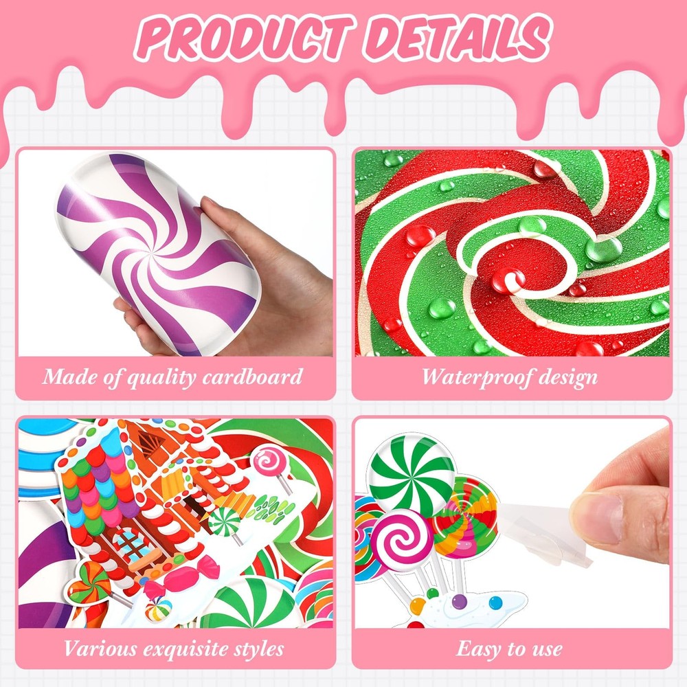 Features: Candy Christmas party decorations: Ideal for decorating any inside front door or wall, office door, bulletin board, etc., these candy cutouts decorations will elevate your party's ambiance Candy cutouts for classroom: These lollipop cutouts can also be applied as teaching aids or gifts for children, catering to home schools, kindergartens, and preschools Peppermint cutouts: These striking colors and vivid designs will surely enhance your party's fun and create a sweet and romantic candy world that will be a total hit among your guests, especially children Specifications: Material: cardboard Size: as picture shown Color: as picture shown Package Includes: 60 x candy cutouts 5 sheets x glue points Note: 1. The size may exist little difference due to hand manual measurement. Due to the screen display, the color of the may differ slightly from the picture. Package Includes: you will receive 60 pieces candy cutouts including 12 different styles and each pattern has 5 pieces, equipped with 5 sheets glue points; Enough quantities and rich patterns can meet your diverse decoration needs, creating sweet atmosphere Material: the candy bulletin board decorations are made of quality cardboard, duble-sided printed with bright color and cute patterns, reliable and sturdy, non-and waterproof, which won't fade or smudge over time and can provide long-lasting services to your classroom or home Size Information: our candy classroom decorations come in different size about 4.7inch/12 cm; Each candyland cutouts has plenty of writing room; You can DIY them into desk tags, invitations, postcards, Christmas tree crafts, gift cards, classroom projects, games without leaving traces Colorful Candy Theme Design: these candy bulletin board set are designed with green, red, purple, yellow, blue colors and cute patterns such as big lollipop, candy with bow, candy house; Vivid and lovely patterns will give people a lively feeling and inspire children's interest in learning Wide Applications: these peppermint lollipop cutouts decorations can add sweet and festive mood, which is suitable for Christmas classroom bulletin boards, Christmas crafts, Christmas ornaments, candy party supplies, lollipop parties, , wedding parties, baby shower, winter calendar and holiday decorations
