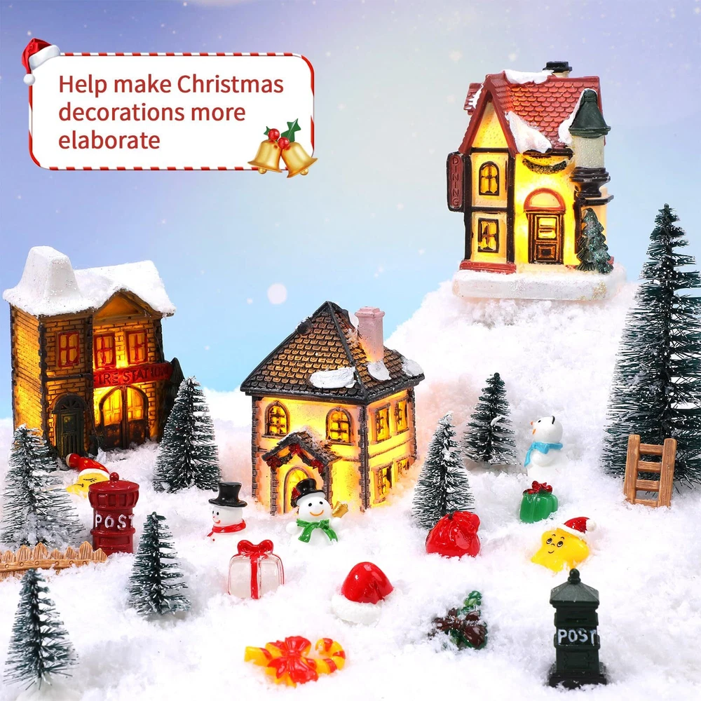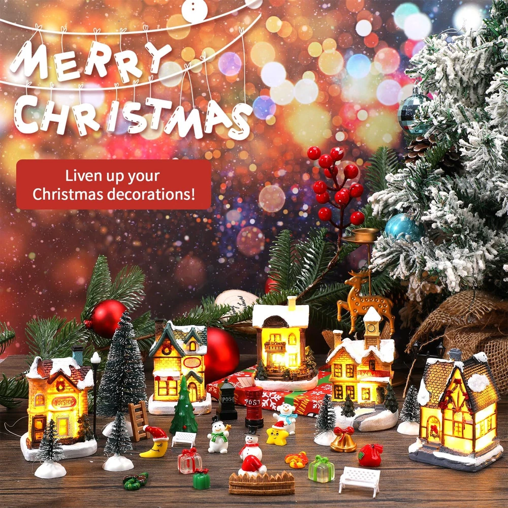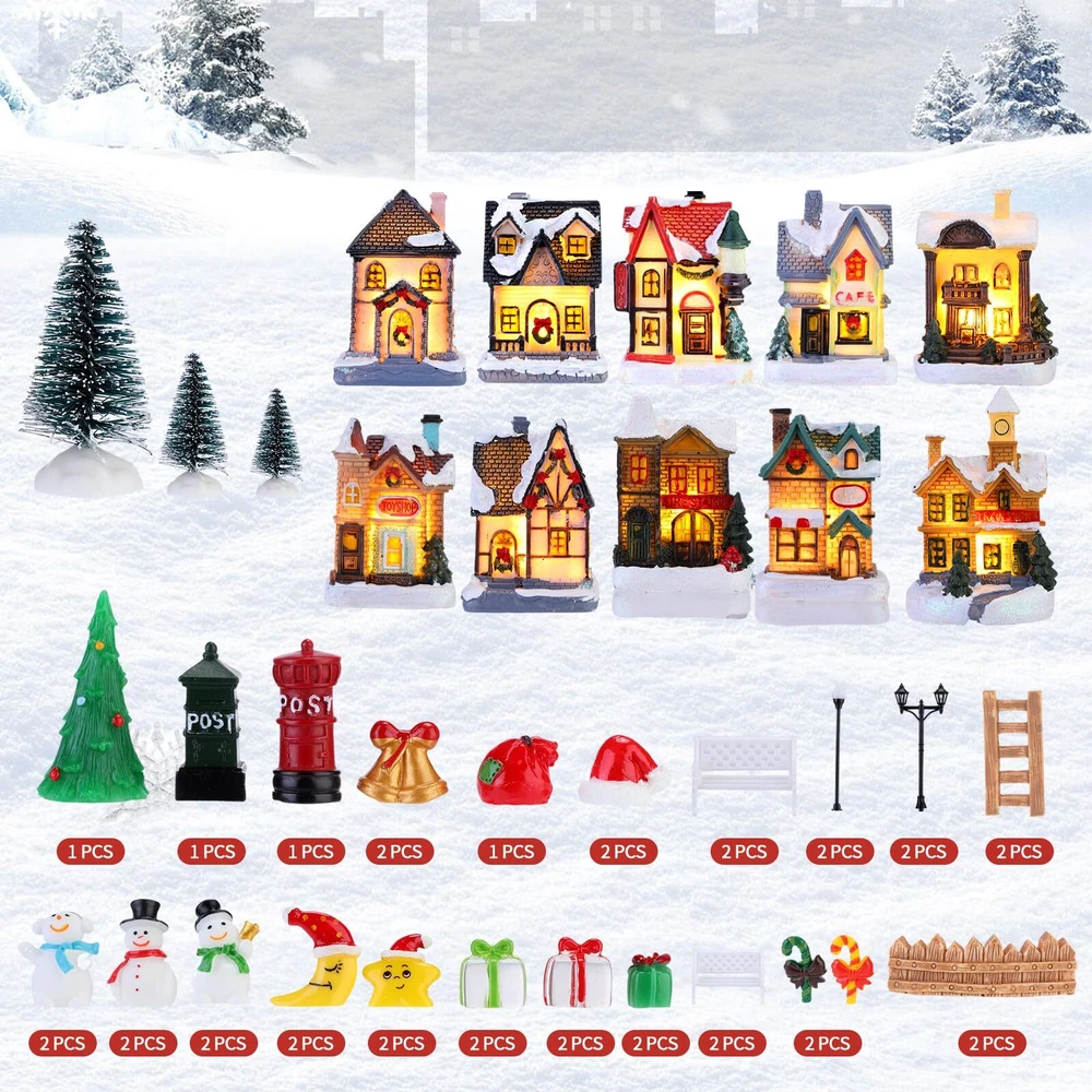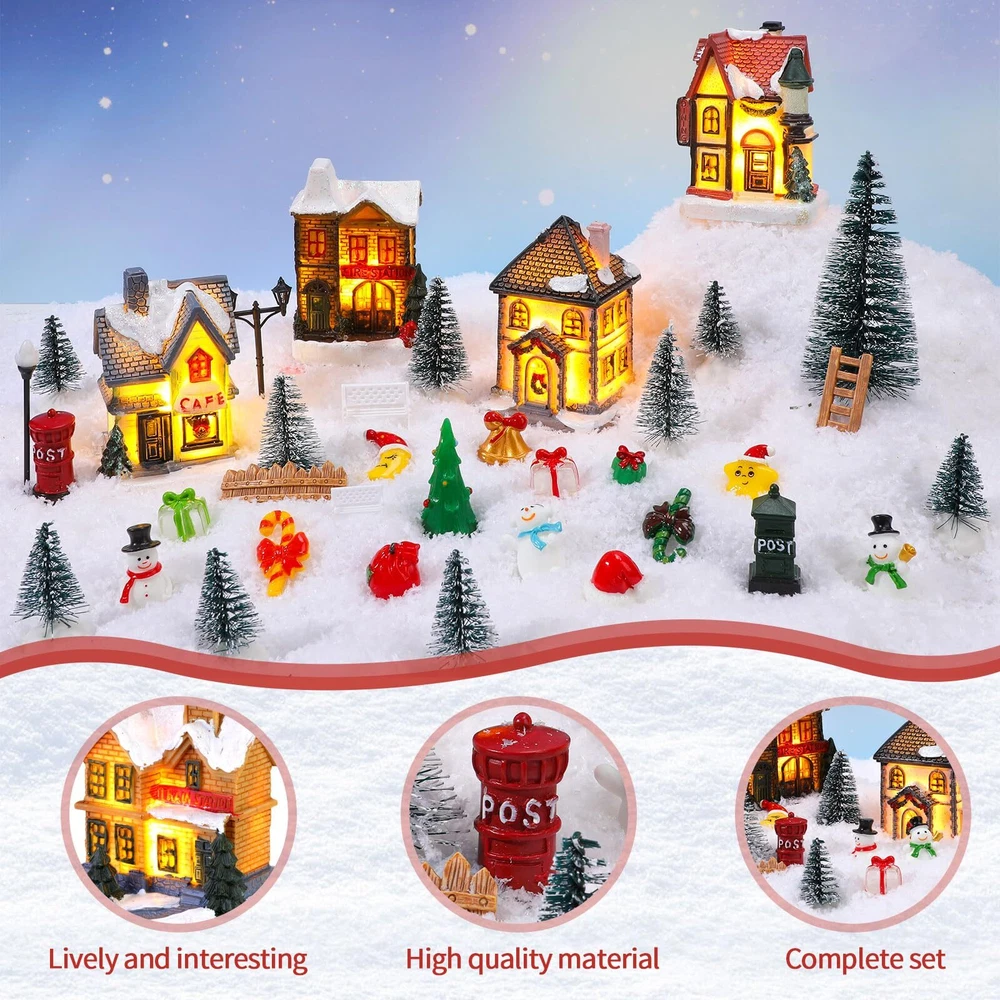 60 Pcs Christmas Village Figurines Decor Set Led Lighted Mini Xmas Village Ho...