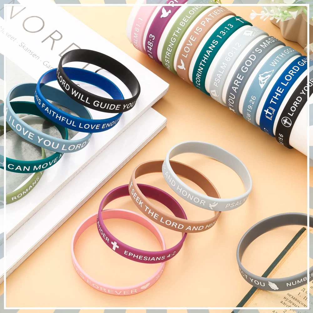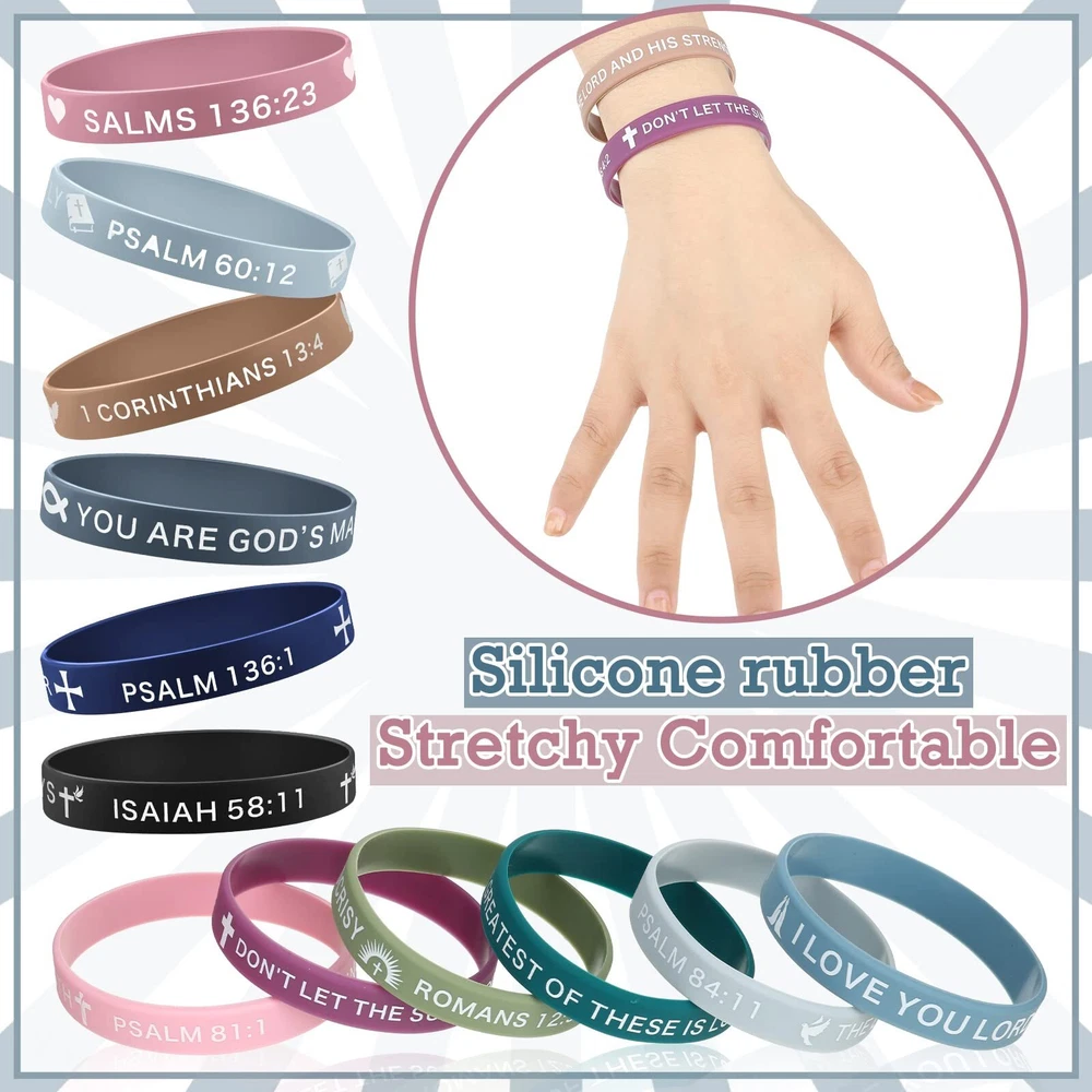 60 Pcs Religious Silicone Bracelets Christian Scripture Bracelets Bulk Rubber...