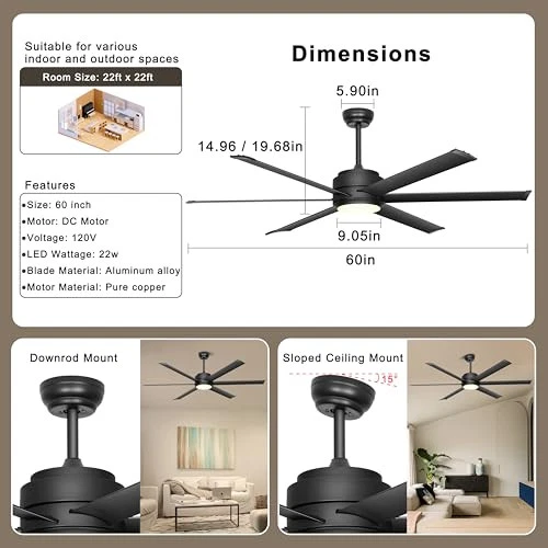 Menu 1. We require immediate payment. 2. We currently accept payment via eBay managed payments only. 3. Once payment is cleared, we will dispatch your shipment within 1-3 business days. Please refer to the "Shipping" tab for more information regarding shipping speed to your destination. Ceiling Fan with Lights - 60" Industrial Ceiling Fan Remote & APP Control, Dimmable, DC Motor, Outdoor Ceiling Fan for Patio Living Room, Black Product description Smart Ceiling Fan: Easily control our 60" Modern Ceiling Fan with Light via Remote/App. Crafted from premium aluminum alloy, it's built to withstand rust, fading, and the test of time, ensuring lasting performance and style Dimmable Ceiling Fan: This black ceiling fan with light offers 3 CCTs - Warm, Neutral and Cool light, as well as brightness adjustment from 100% to 10%. Adjust to suit your every mood and occasion, ensuring the perfect ambience for any space Reversible Ceiling Fan: Industrial ceiling fan provides 6 wind speed adjust and reversible rotation - cooling in the summer and circulating air in the winter while keeping the room warm. Airflow with this black ceiling fan's customizable speed options 30dB Silent Operation: Experience tranquility with this outdoor ceiling fan with light's silent motor, ensuring light sleepers enjoy a restful night. Plus, with its convenient 2H timer function, you can easily schedule cooling or lighting as needed Energy-Saving DC Motor: Indoor/Outdoor ceiling fan’s motor minimizes power consumption. Enjoy cost-effective operation without compromising performance. 60" ceiling fan and remote offer the blend of functionality, style and sustainability PLEASE MESSAGE US IF YOU HAVE ANY OTHER QUESTIONS, AND MANY THANKS FOR READING ALL OF THIS. Copyright ©#. All Rights Reserved.