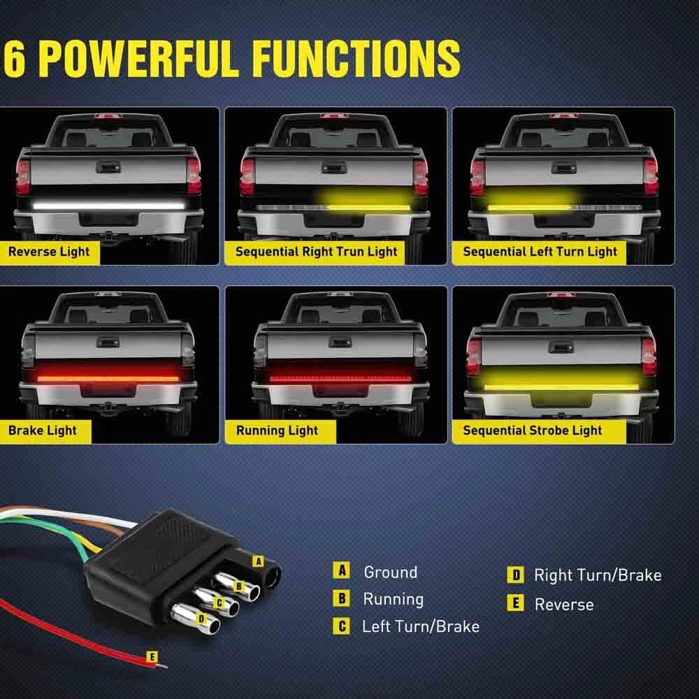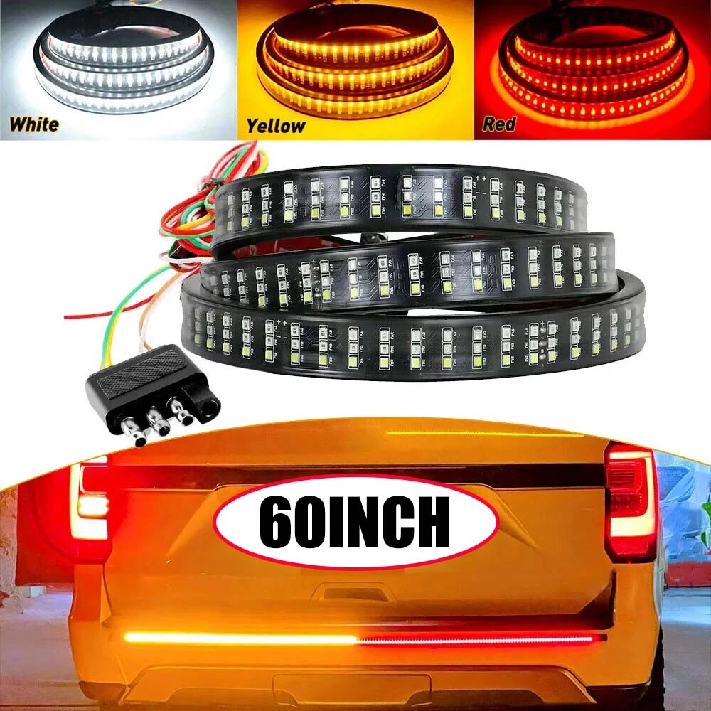 Product Description If there are any problems after you purchased, please message us by ebay firstly, we will help!! Please don't leave neutral or negative feedback or open a return request without any communication. Features: Waterproof 4-pin trailer connector included. Universal Fit for most truck, SUV, for jeeps and RV for pickup etc Can attach to any smooth surface by its adhesive double-side tape on the back. Flexible and easy to installation even can mounted to the rear window,party household decoration and so on. Long lifespan,over 70000 hours. Made by OEM approved & ISO certified manufacturers in materials that meet or exceed strict OEM requirements. Specifications: Brand New,100% high quality. Input voltage: DC12V LED power: 6W Strip light Length: 60 inch Strip light width : 0.63inch Strip light height: 0.2inch (5mm) Waterproof: IP68 Material: SMD LEDs+Silicone Fuse amperage: 5A Led quantity: 432pcs (144pcs Red SMD + 144pcs White SMD + 144pcs Amber SMD) Light Color: Red for DRL and Brake, White for Reverse Lights,Yellow for Flow Turn Signal and Double Flash . Working TEMP: -20° F - 150° F Waterproof Rate: IP65 Lampholder Interface: Standard 4 PIN connector Light Angle: 180° Waterproof Mode: Epoxy waterproof Note: 1.This led strip only performs one function. When both brake and turn signal are applied, only the brake light on the LED strip is turned on.The turn signal will start functioning until the brake is released. 2. Well conductive standard 4-pin flat plug.Simple installation with User Manual.If you encounter an unsuitable situation, you can try to go to the nearest car repair shop for decoding adaptation. Some car models need to be decoded before they can be used normally.(Reverse light may require wiring) 3. Professional installation is highly recommended (No instruction included) 6 Functions for LED Strip: 1, Running mode, all red LEDs light up(dipped beam) 2, Brake mode, all Red LEDs light up(high beam) 3, Reverse mode, all White LEDs light up 4, Turn left mode, left Amber LEDs sequentially light up 5, Turn right mode, right Amber LEDs sequentially light up 6, Hazard Emergency Double Flash Mode:left & Right indicator sequentially flowing from center to both sides. Package include: 1x 60" LED Strip Tailgate Light strip General Installation Information: For reference only 1. It is recommended that you test the bar for full functionality before mounting. 2. Unhinge and remove your tailgate. 3. Clean the area thoroughly. Any dirt or dust can reduce the strength of the adhesive 4. If you afraid it may be fall off,you can buy Adhesive Booster at your local and Prime the area with it. 5. Peel off the red protective film from the tape side of the bar 6. Apply the bar left to right, pressing firmly every 12 LEDs for 30 seconds. 7. Finally, test your lights one last time to make sure no wires came loose during installation. Shipping Returns Payment Contact US All items will be shipped in 48 hours after receiving your payment . We ship this item to US only via USPS/UPS/Fedex,etc. It usually takes 3-6 working days to deliver. Many factors may cause package delays, such as location, weather, and the products in the order. We hope you can understand. If you have any questions, please send us an email and we will handle it for you as soon as possible. Thank you. International package usually takes about 7-18 working days to reach you. Please wait paitently,thanks We only ship to confirmed Ebay addresses. Your Ebay address MUST MATCH your Shipping address ▲▲▲ Please contact us first before you sent a return request ▲▲▲ Any problems you meet, we will help to solve it,We will ensure that customers do not suffer losses, please don't worry.Trust us!!! 1) No NEED TO RETURN . If you received an incorrect, damaged, defective, or item not as described, Just Contact us directly by ebay messages,send us the photos, videos, we will give you the partial or full refund or replacement on our cost. 2) If you sent a return request ,please selete the reason for return: Changed my mind/Just didn't like it/Order by mistake .Thanks for your cooperation. Return products must also be in its original condition: including box, packaging and all other accessories. Please email us your return tracking number too,thanks. 1.We accept PayPal, MasterCard, Visa, American Express, Discover and etc payment. 2.Payment is expected within 7 days of auction close. Unpaid Items will be forfeited per eBay . 3.Immediate payment needs to be processed for items. 4. Please Note: The buyer is responsible for any applicable import duties and local taxes. Our Working Time: (GMT+8)Monday to Friday,9:00am-18:00pm. For inquires and customer support, please send your emails via ebay email system. All emails will be responded to within 24 hours during working days. Weekends Time will be responded to within 24-48 hours . Please be patient and give us some time, we will solve your problem ASAP. You can also send photos or videos for us to quickly answer your questions. Thank you very much,and thanks for your understanding. We appreciate your business and strived to improve our customer service and our commitment to quality. We will leave a 5-star positive feedback immediately after payment is received. We appreciate a 5-star positive feedback as much as you do.It is very important for us. Please DO NOT give us a neutral or negative review. We are a growing small store and we will do our best to improve every thing. Please give us a chance. Really!!! Appreciated!! NEED YOUR SUPPORT!!! Shipping All items will be shipped in 48 hours after receiving your payment . We ship this item to US only via USPS/UPS/Fedex,etc. It usually takes 3-6 working days to deliver. Many factors may cause package delays, such as location, weather, and the products in the order. We hope you can understand. If you have any questions, please send us an email and we will handle it for you as soon as possible. Thank you. International package usually ta