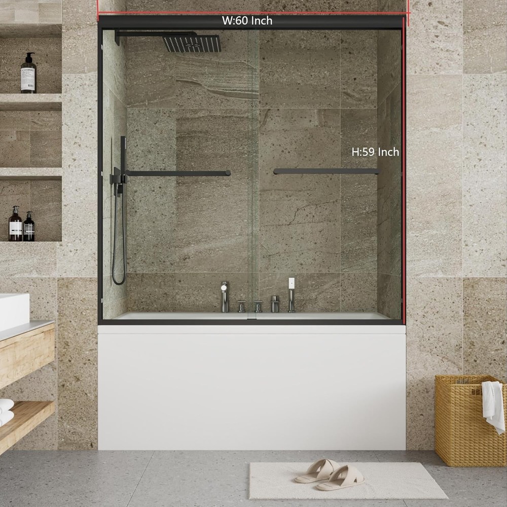 Product description 【Premium Tempered Glass – Clear, Strong & Easy to Maintain】Made from high-quality 8mm tempered glass (6mm on select models), this sliding shower door stays crystal clear and resistant to scratches, soap scum, and hard-water stains. The easy-clean surface keeps your bathroom looking fresh with minimal effort—perfect for busy, modern households. 【Leak-Proof Performance – Keep Your Bathroom Dry & Safe】Precision-fit seals and smooth-glide rollers create a reliable, water-tight barrier that prevents leaks and puddles. Ideal for daily use in family bathrooms—no slipping hazards, no extra cleanup. 【Smooth & Silent Sliding – Everyday Luxury You Can Feel】Engineered with durable stainless-steel tracks and upgraded rollers, this shower door delivers quiet, wobble-free movement. Enjoy a hotel-level sliding experience that adds a touch of comfort and refinement to your shower routine. 【Frameless or Framed Designs – Modern, Stylish & Versatile】Choose between a sleek frameless style that brightens and visually expands your bathroom, or a structured framed design for a more defined, elegant look. Available in Matte Black or Brushed Nickel finishes to complement both classic and contemporary décor. 【Quick Installation & Adjustable Fit – Perfect for Any Remodel】Fits 44–48 inch or 56–60 inch openings with ease. All essential hardware and step-by-step instructions are included, ensuring a straightforward setup. A smart upgrade for main, guest, or family bathrooms seeking durability, convenience, and timeless design. STAINLESS STEEL HANDLE The stainless steel handle is securely fastened to the glass doors, designed to withstand regular pulling and tugging without detaching. Additionally, it can double as a towel rack. Extreme Water Resistance Our frameless shower doors are equipped with waterproof cans and seals to ensure that moisture stays in the bathroom,allowing you to enjoy a dry and comfortable showering experience. Robust and Reliable Upper Guide Rail High-quality top rail fixings ensure that the door is stable and safe.Whether you pull it vigorously or use it frequently,our shower doors are long-lasting and durable.