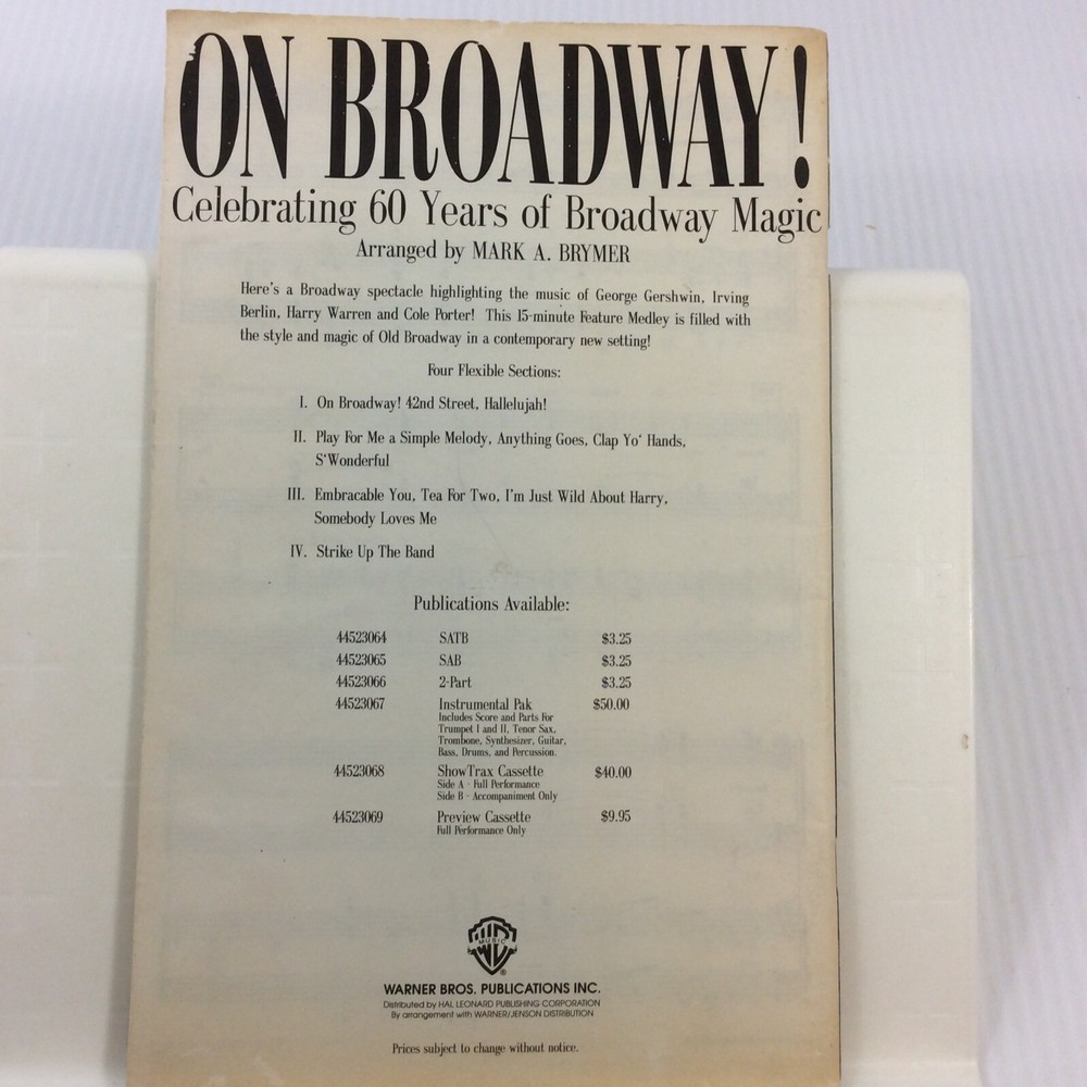 MPN: 44523064 Format: Collection/Song Book, Sheet Music Genre: Musicals Seller Notes: “Good See photos” Country/Region of Manufacture: United Kingdom Publisher: Warner Bros Publications Inc Ensemble: Choir Experience Level: Intermediate Instrument: Piano, Vocal