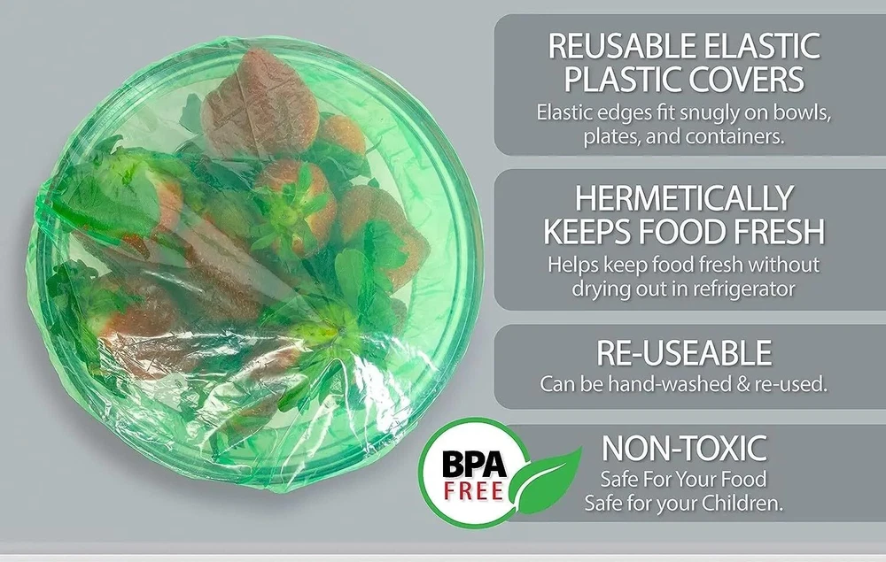 Elastic Food Storage covers for Bowls, Resusable and Washable. 3 Sizes, The pack includes 60 total covers, 20 (large) 13 inches, 20 (medium) 11-1/2 inches, and 20 (small) 9-3/4 inches. We Got You Covered The fitted covers easily fit around casseroles, pie plates, round and square dishes, soup bowls, meal prep containers, saucepans, and so much more! ♻️ Reusable and Disposable They are heavy duty, resilient and designed to last. You can easily hand wash them to reuse over and over. Elastic Reusable Washable Non Toxic BPA Free