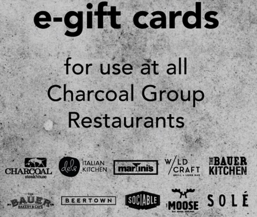 Enjoy the delicious taste of Charcoal Group Restaurants with this gift card. Use it to order your favorite food and beverage items without worrying about expiration. This card has a value of $123.29. If you're a fan of Charcoal Group restaurants, this is a great deal! Use it at any of the Charcoal Group restaurants, including The Charcoal Steakhouse, Martini's, Dels Italian Kitchen, Solé Uptown, Wildcraft Grill & Long Bar, The Bauer Kitchen, The Bauer Bakery & Café, Moose, Beertown Public House, and Sociable Kitchen & Tavern.