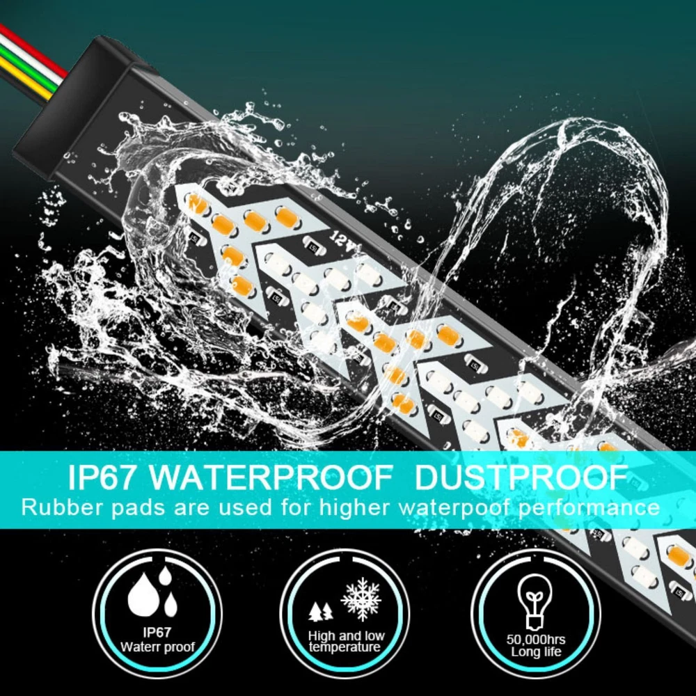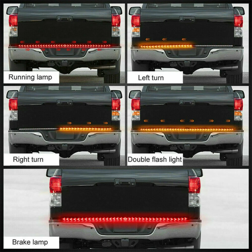 Product Description 60 inch LED Truck Strip Tailgate Turn Signal Brake Double Flash Tail Light Bar Features: FULL FUNCTIONS: The new style tailgate light features full functions of the brake, flowing turn signal, double flash, and brake light. BRIGHT LIGHTS: With 528pcs(276Pcs Red+252Pcs Yellow)2835 SMD led chips to give out the super-bright beam. Adds clear visibility to the rear drivers, better-ensuring safe traffic on roads. UNIVERSAL FITMENT: This flexible light strip features 60 inches long, widely suited for almost all 12V operated at DC 12V wide voltage, Pickup Trucks, Trailers, Cars, SUV, RV, VAN, boat anchor, etc. Specifications: Type: Truck Tailgate Strip Bar Shell Material: PVC LED Color: Red/Yellow Red For Brake Light and running light (Will Not override Turn signal) Yellow For Turn Signal Light (flowing) (Will override brake light) Brake Light Quick flash 3 times and stay on. (Red color) Double flash: Yellow streamer from the middle to the left and right Light Source Power: 5W Current: 0.3A Luminous Flux: 1000LM Use Voltage: DC12V Waterproof Rate: IP67 Package contents: 1x 60inch Truck Tailgate LED Light Strip Bar About Us Welcome to the our store! You can chat with us about anything to do with our products. we dedicated to provide best products and services. Payment All ebay verified payments are accepted, if you have any questions about the payments, you can let us know, we will try our best to solve this for you. Shipping We usually ship all packages within 24 hours after payment and 48 hours at latest for a small part of our products. Returns Always believe we can solve your questions about our products with communication. And if it comes to a return at last, the item must be intact and the same condition when you received it, also the return is only available within 30 days after delivery. Contact Us You can contact us at any time via ebay messages, we will reply at the first time in the working times. We will always be here for you! Working time: 9am to 6pm, Monday to Friday. powered by
