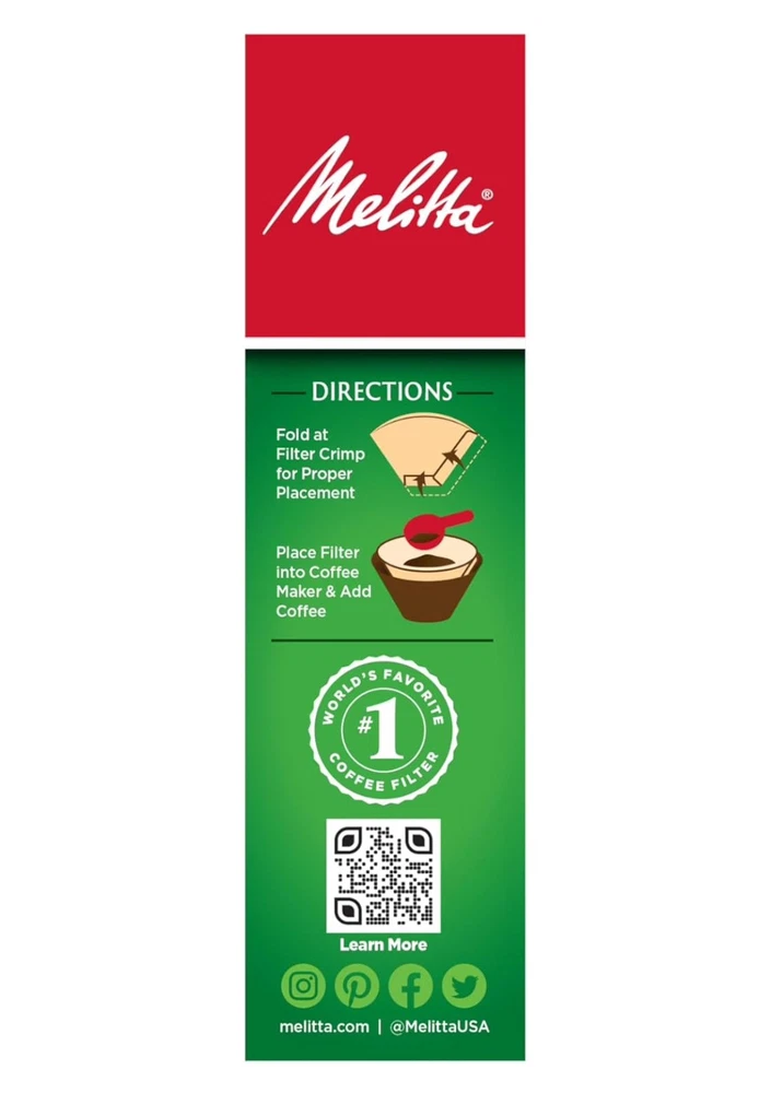 CONE COFFEE FILTERS: These super premium Melitta cone coffee filters fit all 2-6 cup electric – as well as most 1 cup cone-style pour-over coffee makers. Our filters trap more bitter oils & impurities for a better cup of coffee. ADVANCED DESIGN: Our coffee filters feature Microfine Flavor Enhancing perforations that allow the full coffee flavor to filter through & a double crimped filter design to help protect against bursting. QUALITY FILTERS: Our cone, basket and single serve filters are all designed to brew rich, flavorful coffee. They are all compostable & made of high quality paper that won't tear for mess-free brewing. PERFECT BREWING: Our products are designed to provide the perfect brewing experience with a complete selection of cone coffee filters, pour-over coffee filters, basket coffee filters, single serve coffee filters & tea filters. JOIN THE PURSUIT FOR BETTER COFFEE: Melitta is dedicated to providing the ultimate coffee experience with our premium coffee filters, coffee pods, pour-over brewers, coffee makers & premium coffees.