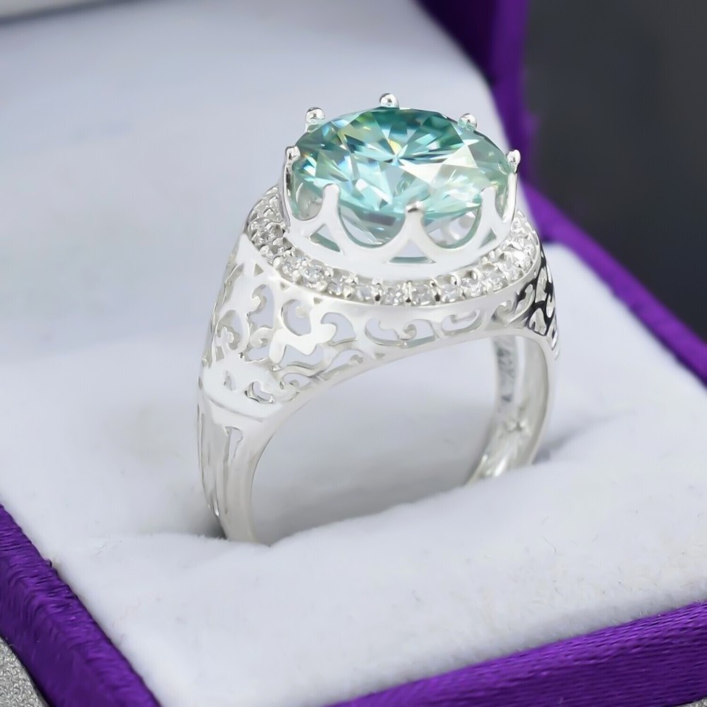 12.80 Ct Champagne Diamond Ring in 925 Silver Certified Prong Setting