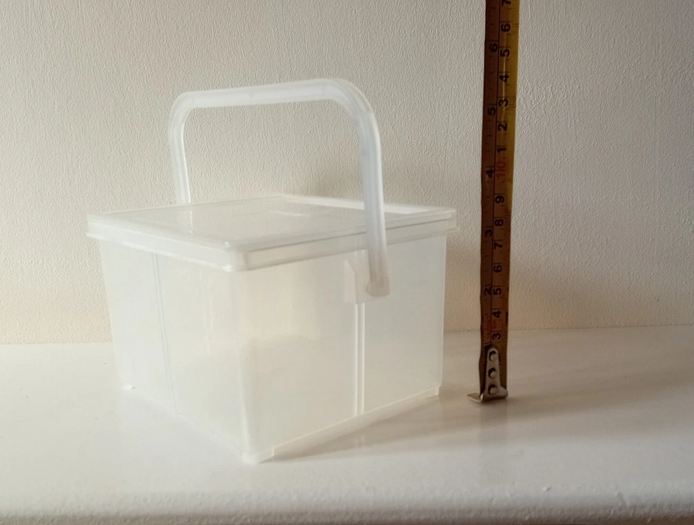 This small plastic storage box with a clear lid and a carry handle is perfect for keeping your items safe and organised. The box has a single compartment, measuring 125mm in length, 105mm in depth, and 75mm in height, with a weight of 90g. It is made of durable plastic material, making it ideal for long-term use. These boxes are stackable - This listing is for a job lot of 600 no - Carriage to UK mainland included The storage box is designed for easy access to your items and features a lidded top to keep your belongings safe. The carry handle makes it easy to transport your items, making it an ideal storage solution for home, office, or garden use. The box is manufactured in the United Kingdom and is perfect for storing a wide range of items and has a useful measuring rule on the lid