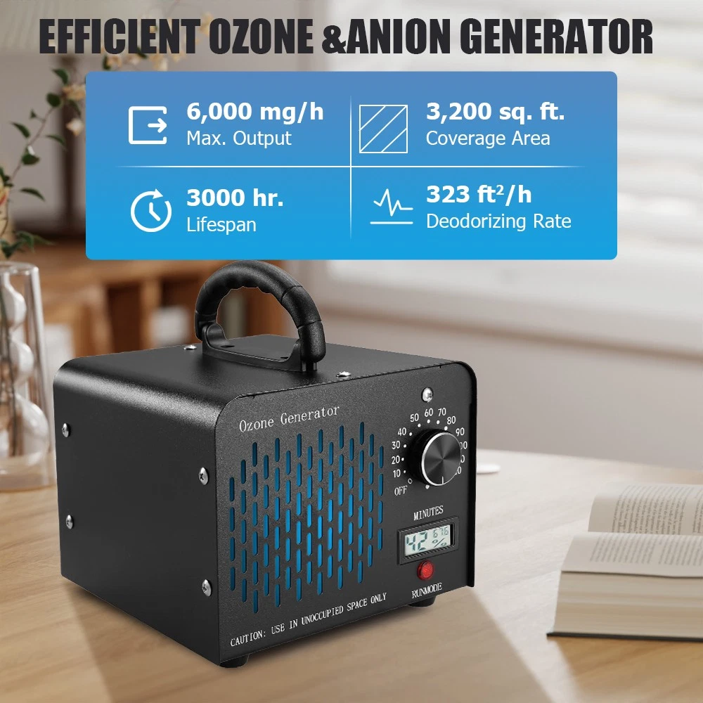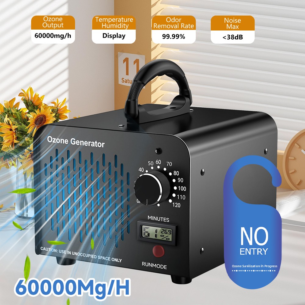 A: 60000Mg/H Ozone Generator Air Purifier Featur es : Maximum output of 6 0 ,000 mg/h is suitable for spaces up to 20-400 square meters It has a life-time of up to 3 ,000 hours and does not require any replacement parts It is suitable for cars, boats, dumpsters, kitchens, bathrooms, basements It effectively cleans odors from cooking, smoking, and pets Specif ications : Dimensio ns: L170W1 90H175mm Shell material: SGCC hot-dip galvanized sheet+electrostatic spraying Airflow: 170m/h Noise: 40dB Timing: 120 minutes Input voltage: AC110V/60Hz or AC220V/50Hz Output voltage: 2500-2700V Rated power: 80-150 watts Control mode: manual control Applicable area: 20-400 square meters Working temperature range: -10 ℃ to 70 ℃ Working humidity range: 0% to 65% Service life: 3000 hours Ozone level: 60000Mg/H ozone level Pac king Include: 1 x User Manual 1 x Detachable Power Cable 1x Ozone Generator Machine ============================================== B: Air Purifier Cleaner N ote : It is no built-in battery, USB cable must be connected to work. Fe atures : 1.Negative ion dust removal and odor elimination neutralizing electron 2.Blue light purification 3.Aromatherapy storage box[can add aroma tablets] 4. In addition to VOC, pollen, PM2.5 dust particles 5. In addition to second-hand smoke, formaldehyde 6.High speed power purification system 7. Free TYPE C charging cable Specifica tion : Air purifier air volume: 50 cubic meters / hour Applicable area: 11 square meters (including)-20 square meters (including) Applicable people: allergy, smoking, pet family, workplace office, etc. Energy efficiency level: first-class energy efficiency Power supply mode: USB Product noise: 36dB or less (dB) Energy Efficiency Class: Class I energy efficiency Product voltage: 5V Product power: 5W Wire length: 1M Product Size:19*11*9cm Packi ng list: Air purifier*1 Filter element*1 Activated carbon cotton *2 Scented Sponge *1 Charging cable*1 Instruction manual*1 Color box*1