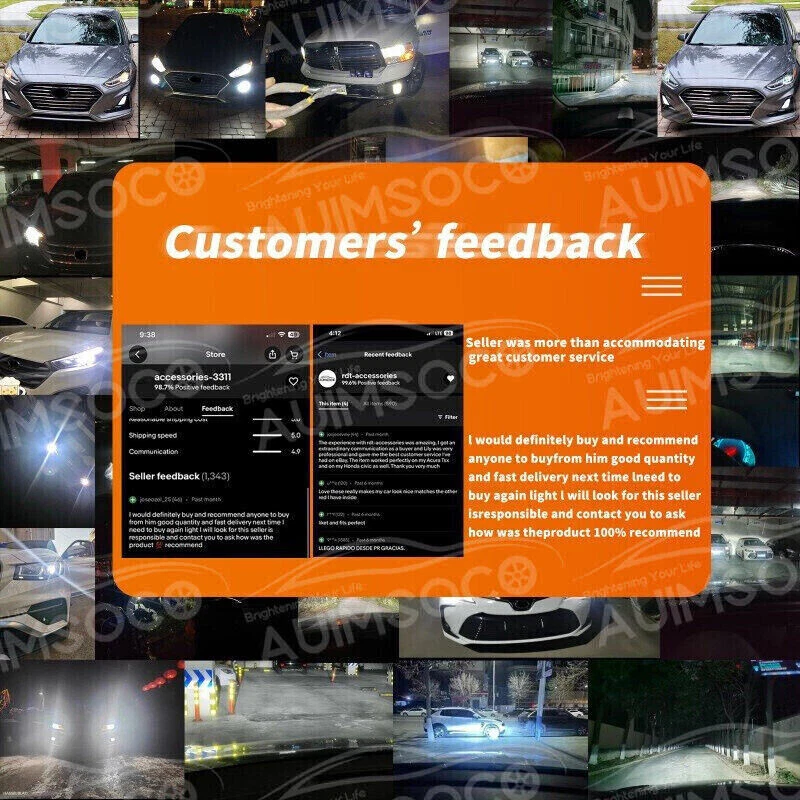 Store Categories Store Categories Fits Chevrolet Headlight Bulb Fits Ford Headlight Bulb Fits GMC Headlight Bulb Fits Honda Headlight Bulb Fits Toyota Headlight Bulb Fits Nissan Headlight Bulb Fits Dodge Headlight Bulb Fits Other Car Headlight LED Fog Lights Car Stickers Motorcycle Parts Other 6000K LED Headlights + Fog Bulbs For Chevy Silverado 1500 2500 3500 HD 2007-2015 Product Overview Details Description LED Headlight Bulb Conversion Kit Combo 9005/HB3 High Beam + H11 Low Beam+ 5202/H16 Fog Lights Ultra-small Ultra-light design, Mini size, the same as the car original light, suit for all models. Engineering beam pattern design throw more light on road evenly at appropriate angle without foggy light Xenon white light reflect road paint/signs better to show clearer road situation during night driving 270 degree low beam angle with cut-off line,will not dazzle oncoming traffic Built-in constant current CPU, instant full brightness without start-up relay All-in-one aluminum profile as heat conduction system, 360 degree heat radiating, keep the light bulb in appropriate working temperature 3x Pairs(6pcs) Specifications Voltage: DC9~32V Power: 72W Light flux: 4000LM Chip Type: Efficient COB Material: Aluminum 6063 Color temperature: 6000K Protection level: IP68 Stable work: -40~+140°C Usage: car headlights (high / low beam) Features: **Fan Free Design,Physical heat dissipation: Physical cooling, stable heat dissipation, no noise,more energy-saving than fans,longer service life ** Aviation aluminum raw materials: The lamp body is made of aviation aluminium, with fast heat conduction and high heat dissipation efficiency, which can effectively avoid product overheating. ** Selected High Quality Bead Chip: Smaller size, only a lttle distance higher than halogen lamp, not occupying the space in the assembly, installation is easier.Because of its small size and large heat dissipation space, the problem of overheating of the lamp body is avoided and the heat dissipation is more comfortable. ** IP68 Waterproof: With top waterproof performance, working temperature is -40 ~+ 200 degrees Celsius, fearless of weather challenges, adapt to various environments. ** Small Size Of Lamp Body: The size of the lamp body is much smaller than that of the ordinary products,and the installation is easier, which can effectively avoid the problem that the dust cover can not be closed. LED headlight advantages: ****LED lamps are more energy and power than conventional halogen lamps. ****The brightness is close to the xenon lamp, but the LED lights are illuminated without delay to enhance road safety. ****Instantly start without strong current impact, improve battery life by more than 30%. ****Fast cooling , using the most advanced, heat-dissipating structural design. ****The power driver adopts a wide voltage constant current mode which has a simple structure, so that the automobile can flexibly cope with various voltage unstable conditions, and has achieved the purpose of less component damage. Compared to HID ballast maintenance, The repair probability is very low which is less than 80%. ****Low heating temperature, The working temperature of helium can reach 800°-1000° ****LED headlight has a simple structure, and the parts are less than the xenon lamp, which is lower than the xenon lamp failure rate! ****Car LED headlight color temperature are balancing. Xenon bulbs are clear in the same color, about 6000K-6500K. Install Caution 1. As a safety precaution, make sure that the car has had time to cool down properly before starting the installation process. 2. Put the vehicle into park or make sure it is securely in gear. 3. Be sure to turn off the ignition and remove the key. 4. Be careful to avoid burns, especially when turning on or off the vehicles lighting. 5. Be careful to avoid crushing or cutting the bulbs. Also make sure to not touch the bulbs with your fingers, as this will cause blotting. 6. Fully examine the connection of the contact points, ports and the wires as faulty connections can cause lighting problems. 7. Make certain that the end of the bulb does not come in contact with the interior light shield of the headlight when adjusting the bulb. Package Includes: 1x Pair 9005/HB3 High Beam 1x Pair H11 Low Beam 1x Pair 5202/H16 Fog Lights Shipping Policy Payment Method Returns Policy Shipping Policy We will deliver the goods to you through USPS, which will take about 3-6 working days. You can track it online. Payment Method 1. PayPal payment accepted only. 2. Items will be shipped to your eBay address. Please make sure it is correct. 3. Payment must be received 4 days after auction ended. Returns Policy If product is defective or damage upon arrival, or wrong product shipped, please contact us immediately. Returns accepted within 30 days of delivery date and item must be in original new condition, not worn or altered in any way with attached tags & wrap. Otherwise deal is final. Return shipping must be paid by buyer. 6000K LED Headlights + Fog Bulbs For Chevy Silverado 1500 2500 3500 HD 2007-2015 Details Description LED Headlight Bulb Conversion Kit Combo 9005/HB3 High Beam + H11 Low Beam+ 5202/H16 Fog Lights Ultra-small Ultra-light design, Mini size, the same as the car original light, suit for all models. Engineering beam pattern design throw more light on road evenly at appropriate angle without foggy light Xenon white light reflect road paint/signs better to show clearer road situation during night driving 270 degree low beam angle with cut-off line,will not dazzle oncoming traffic Built-in constant current CPU, instant full brightness without start-up relay All-in-one aluminum profile as heat conduction system, 360 degree heat radiating, keep the light bulb in appropriate working temperature 3x Pairs(6pcs) Specifications Voltage: DC9~32V Power: 72W Light flux: 4000LM Chip Type: Efficient COB Material: Aluminum 6063 Color temperature: 6000K Protection level: IP68 Stable work: -40~+140°C Usage: 