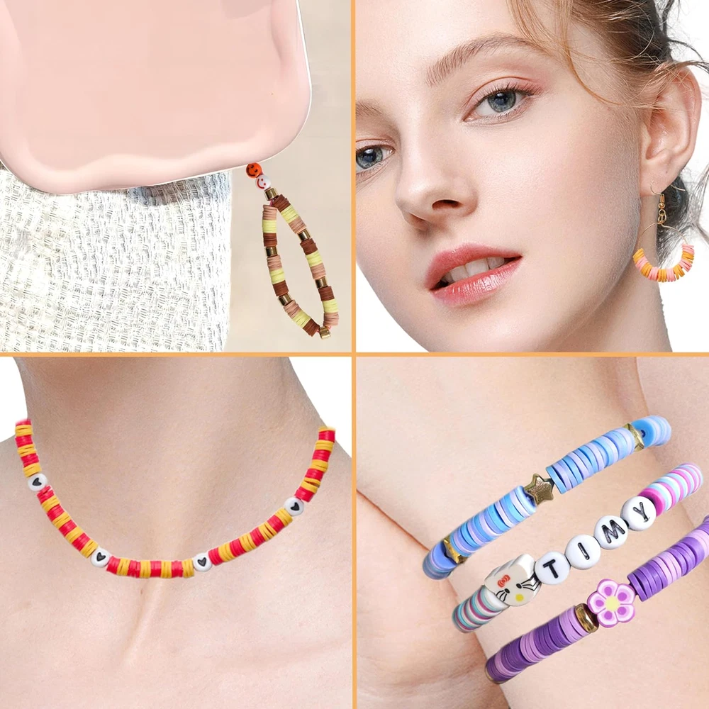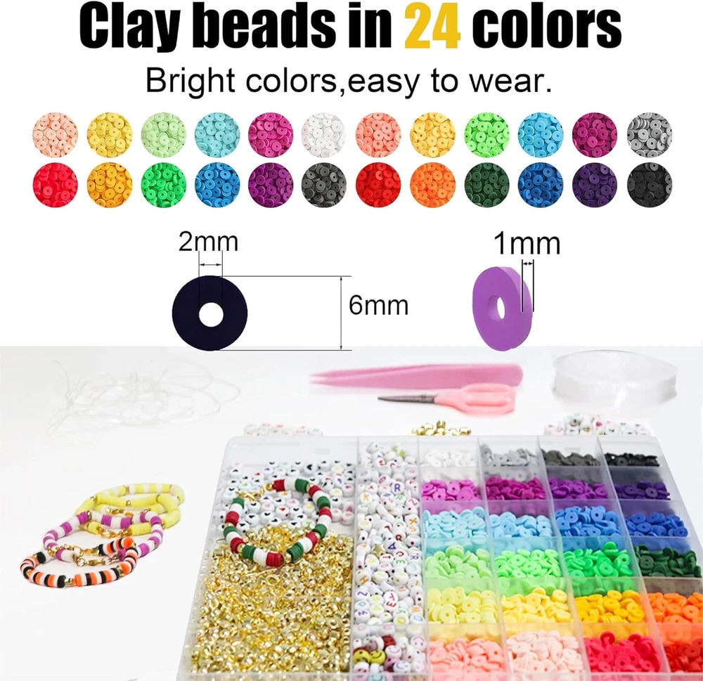 6000+PCS Clay Beads Bracelet Making Kit,24 Color DIY Flat Preppy Beads Ages 4-12
