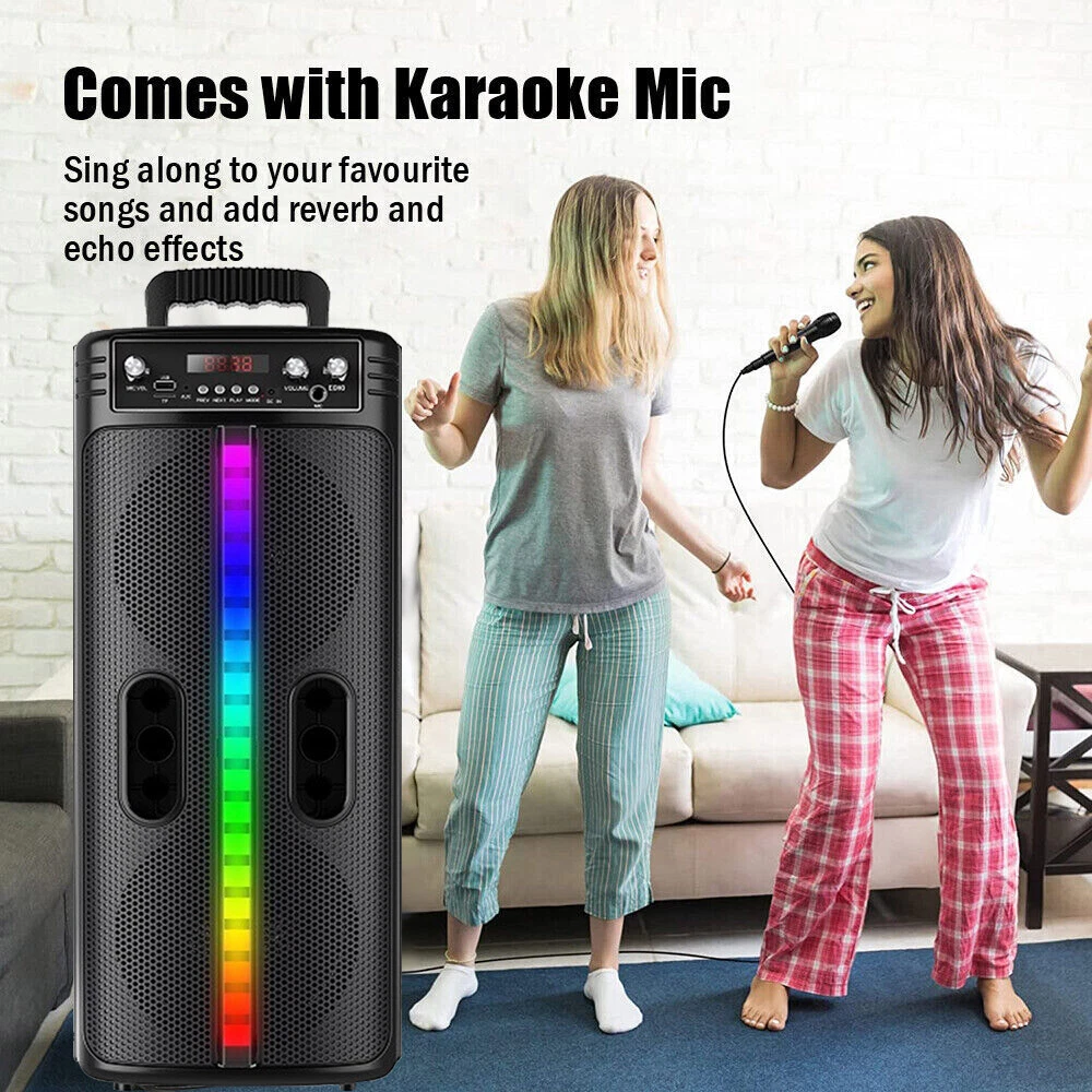 SAFE & SECURE SHOPPING 100% SATISFACTION GUARANTEED FAST SHIPPING 6000W Portable Bluetooth Speaker Sub Woofer Heavy Bass Sound System Party & Mic Product Description 6000W Portable Bluetooth Speaker Sub Woofer Heavy Bass Sound System Party & Mic Dual - 8 inch Speaker: Feature: Dual Speakers & Powerful Bass: Highly efficient woofer produces deep and low bass while the mids and highs remain loud and clear even when the volume is cranked up. Smooth Bluetooth Connection: Allows you to stream your favorite music straight from your smartphone, iPod, tablet or any other suitable blue-toothe device within 10M/32 feet. Just move about and keep the music going with no cable and no hassle. Additional Audio Sources: when Bluetooth device isn’t available, you can pop into a flash disk or micro SD card, or connect to your 3.5mm audio device like MP3/MP4/5 player, etc. to play your favorite tunes. Portable & Rechargeable Designed: Built-in 3000mAh rechargeable battery offers up to more than 5 hours of playtime, with heavy-duty top handle, it's easy to take this speaker anywhere you go and throw up a party. Specification: bluet. version: 5.1 Audio Input:Memory Card/Bluetooth/FM/AUX/USB Built-in Battery: 18650 li-ion battery Battery capacity:3000mAh Charging time: 5-8 hours Play time: 5 hours (fully charged) Input Voltage: AC 100-240V 50/60Hz Output Power: 20W Peak Watt: 6000w Charging interface: Micro USB. Speacker Size: 60*23*20cm/23.6*9*7.8 inches Color: Black Material: molded PP plastic cabinet Using method: Supports the TWS function and supports pairing of two devices(Maximum) TWS function pairing process: When the two speakers are turned on, long press the play/pause button and hear the prompt tone, the pairing is successful. (Do not connect Bluetooth before pairing) To cancel a match, hold down the pause/play button and cancel the match when you hear the prompt. After pairing, if the two devices are turned off without disconnecting, they will be in the default pairing state when they are powered on next time. Lighting effects change with the rhythm of the music. Payment Shipping Returns Contact Us Payment EBAY Managed Payment. But we only Accept your Ebay Address, please Make sure it's 100% right. Payment must be received in 5 business days of auction closing. Please leave note for your special request (e.g. Colors or Size) in when you pay the order. Any special request cannot be accepted after 24 hours of payment, because most of orders will be processed instantly and same day dispatched. Shipping Handling time: 1-3 business day (Orders are not processed on weekends & holidays Tracking information will be sent once item is shipped. Local pick-up is unavailable at the moment. Item is shipped to ebay address. Leaving correct address can minimize delay. Our package will be delivered to you within 1-5 days, please be patient! Returns We greatly appreciate your POSITIVE feedback. Negative or Neutral feedback does not resolve any underlying issues that you may be experiencing as a buyer. Any question or unsatisfaction please contact us with ebay message, we will sincerely solve for you. For any issues with Defects, Return, Item Exchange request, please contact us first and send us a message first before opening any type of case or request. We devote ourselves making EVERY CUSTOMER in 100% Satisfactory and resolve any problem. We highly value and appreciate your business. Thank you. Contact Us All messages will be answered within 24 office hours. Please contact us either by clicking "contact seller" in the "purchase history" section or simply click "ask a question" at the bottom of this page. If you are unsatisfied with our item or service, please contact us before leaving any feedback. We are committed to resolve all issues in a friendly and satisfactory manner. We always reply to messages within 2 business days (off-duty at weekend). If you do not get a response from us, then please check your junk or spam mailbox. Please do not hesitate to leave us your 5 Star ★★★★★ of DSR positive feedback if you are satisfaction with our products ,delivery or services . Thank you very much ! Copyright © 2022 Tongtool