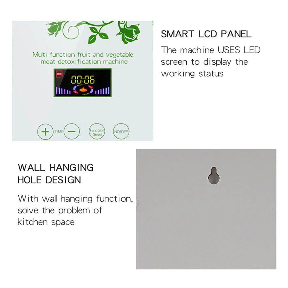 Description -Tempered glass panel, simple, atmospheric, durable, easy to clean, active oxygen, safe -Simple LED display. you can easily select the desired settings. -When cleaning the fruit through live;oxygen disinfection degradation of pesticides, pesticides removal rateof 96%,vegetables and fruits to eatmore assured -Easy to use and install: the portable air purifier for the ozone generator is easy to use. It is small and lightweight and can be carried and used from another room. The compact size makes it easy to install. Live Oxygen Water Function 1. Oral health 2. Preventionof skin diseases 3.Aquarium sterilization, increase oxygen to prevent disease 4.Drinking water purification, homemade mineral water 5.Clothing sterilization, deodorization bleaching
