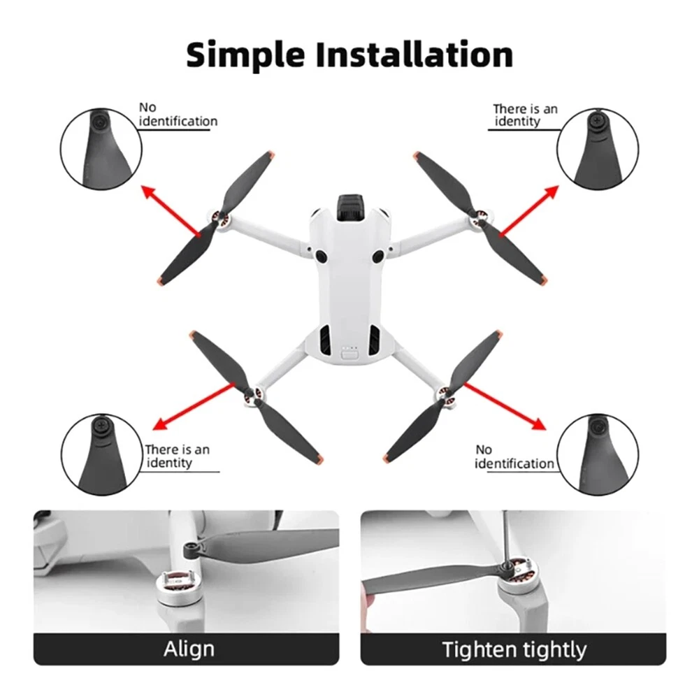 6030F Propeller for 4 PRO Propeller Drone Fan with Screw Replacement4377 1. High toughness material, high aerodynamic efficiency; 2. High-quality PC, ; 3. Low power consumption and strong battery life; 4. Quick disassembly and assembly, saving time and effort. :orange edge Net weight:18.2g (4 pairs) Colour:Black & Orange Material:Plastic Size:7.5x1.8cm Package Contents: 4 pairs * propellers
