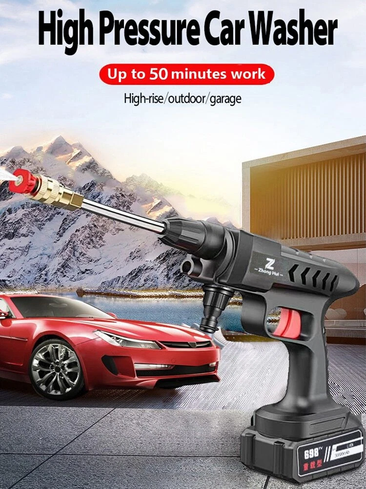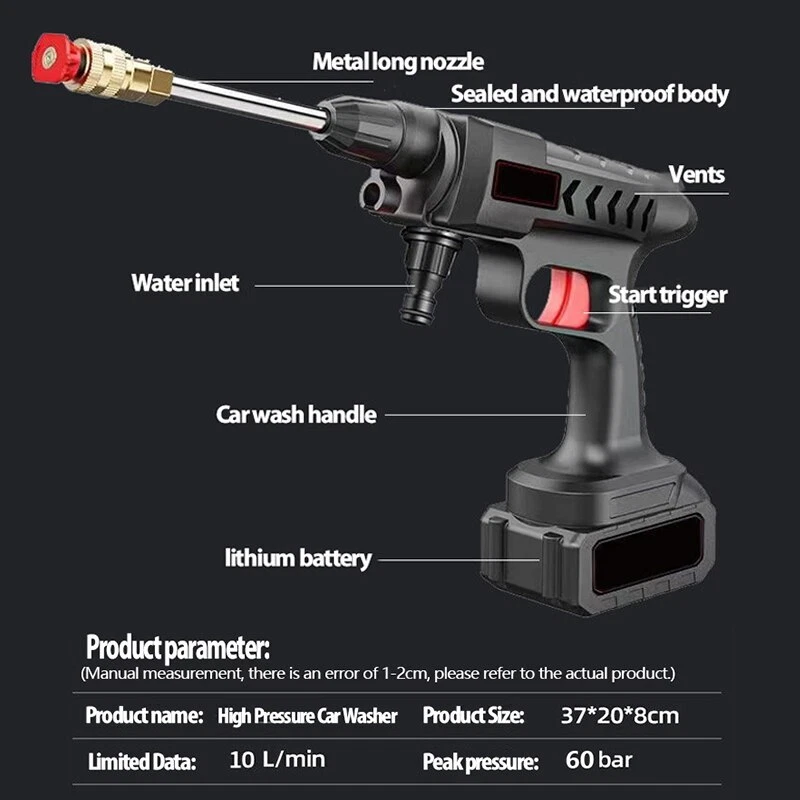 60Bar 300W Portable Cordless High Pressure Car Washer Water Gun