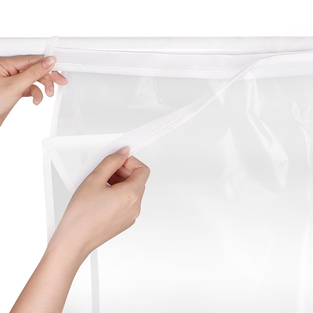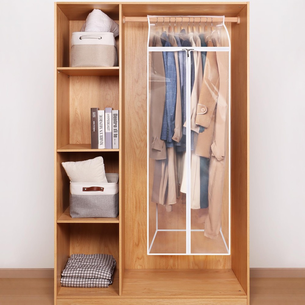 【Easy to Install】 The hanging storage bags are made of soft PE material. Ideal length for winter coat, down jackets, trousers,Long dress, gowns etc. You can easy to install in few minutes and no need to remove from the wardrobe or rod. 【Sturdy Tape and breathable Design】 Clothes cover for hanging with 1.96" wide entire Sturdy Tape closure design and bottom stitching make it more water resistant, wardrobe bags for hanging clothes with elastic band adjustable for different sizes of rod, keeps your closet tidy and organized. 【Upgrade Zipper Design】 Hanging clothes bags for closet storage with 5# durable and smooth triple zipper start from top to the bottom make clothes easy to take out and hang in; zipper closure protects items inside from dirt, debris, moisture, keeping all your favorite/off season clothes, cashmere fresh and wrinkle free. 【Clear Design 】 The hanging storage bags for clothes with clear design, you can easily identify which clothes inside. The wardrobe bags for hanging clothes also can be washed, so you can reuse it and it lasts longer than dry cleaning bags. 【Large Garment Bag 】 Set of 2 hanging clothes bag measures by 24” x 20” x 60” can store 18pcs summer clothes or 6pcs winter coats, down jacket make your closet more organized, extra large garment bag can hang on standard closet rod, double clothes rack, wardrobe storage boxes, closet pole, rod, closet or clothes rack for long time storage.