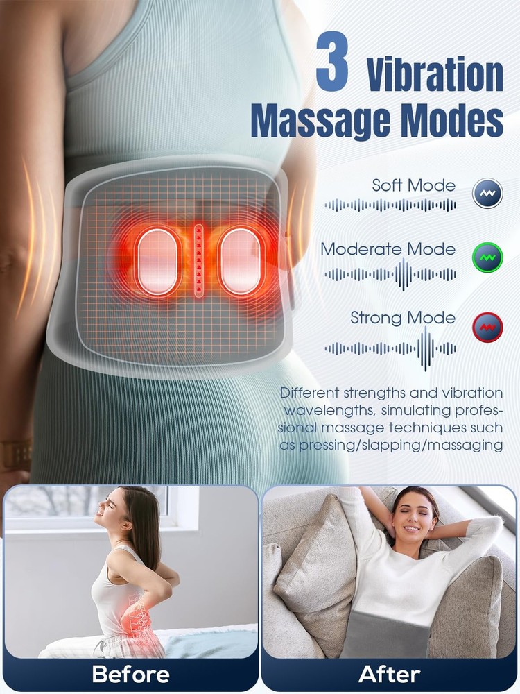 Cordless Heating Pad for Back Pain Relief,60” Large Portable Lower Back Massager with 3 Vibration and 3 Heat,Wearable Heating Pads for Cramps,8000mAh Portable Power Supply Heated Waist Belt Product Details Size: 11”x 44” Brand: Nsoela MPN: HP28112 UPC: 702602405633 EAN: 0702602405633 Special Feature: Cordless, Portable, Customizable Temperature, Dual-Motor Massage System Material: Plush Brand: Nsoela Color: Grey Item Weight: 0.91 Kilograms Package Dimensions : 9.72 x 5.98 x 3.39 inches; 2.01 Pounds Item model number : HP28112 Batteries : 1 Lithium Ion batteries required. (included) Date First Available : August 8, 2024 Manufacturer : Nsoela Country of Origin : China Intelligent Temperature Control: The heating pad for back pain relief provides customized comfort, with three heating level ranges: 40-45C, 45-55C, 55-60C, you can choose the heating temperature according to your personal preference. The heating pad also features intelligent temperature control to ensure stability and fast heating, providing instant warmth and comfort, helping to relieve sore or painful areas. Comprehensive massage: Just long press for three seconds and the device will activate. The heating pad for back is equipped with a dual-motor massage system that allows you to adjust the intensity of the three-level vibration massage. The combination of heat and vibration provides an effective solution for back pain relief, helping with discomfort in the lower back, hips, waist and abdomen. Provides a comprehensive and comfortable heating massage experience. Cordless and Portable: The portable heating pad is powered by an 8000mAh portable power bank (included), which can be used continuously for up to 3 hours even with high-performance functions. It is no longer bound by the power cord. You can use it freely when doing housework, driving or using the computer. In addition, it includes an extension cord, allowing you to switch to the adapter power cord for use at any time, without waiting for charging. Upgrade up to 60 inches: The heating pad massage is made of soft and skin-friendly plush material, combined with a fast heating film and an insulation layer to better absorb heat, effectively relieving lower back soreness and fatigue. The comfortable fabric is elastic and can be easily adjusted to better fit your waist and prevent it from slipping during use. Use the extension strap to extend the product to a maximum of 60 inches, which is flexible and suitable for most people. Comfortable Gift: This cordless heating pad combines soothing heat therapy and gentle vibration massage to relieve tension, reduce pain and provide daily comfort. Whether it is fatigue after work, outdoor activities, muscle soreness after exercise, or warmth in cold weather, our heating pad massage can provide comfort and relaxation. It is a perfect gift for Thanksgiving, Valentine's Day or Christmas, and is perfect for anyone you care about, providing warmth and comfort when they need it most.