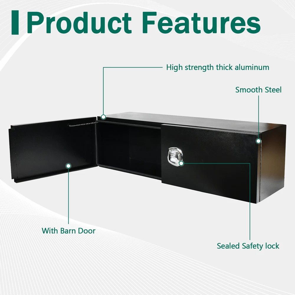 This truck bed toolbox is a game-changer! The sturdy steel construction keeps my tools secure, and the weather-resistant seal protects everything inside. The barn door design makes access super easy, and the lock adds peace of mind. Fits perfectly under my truck bed, saving space while keeping everything organized. Perfect for work gear or camping supplies—super practical and built to last!