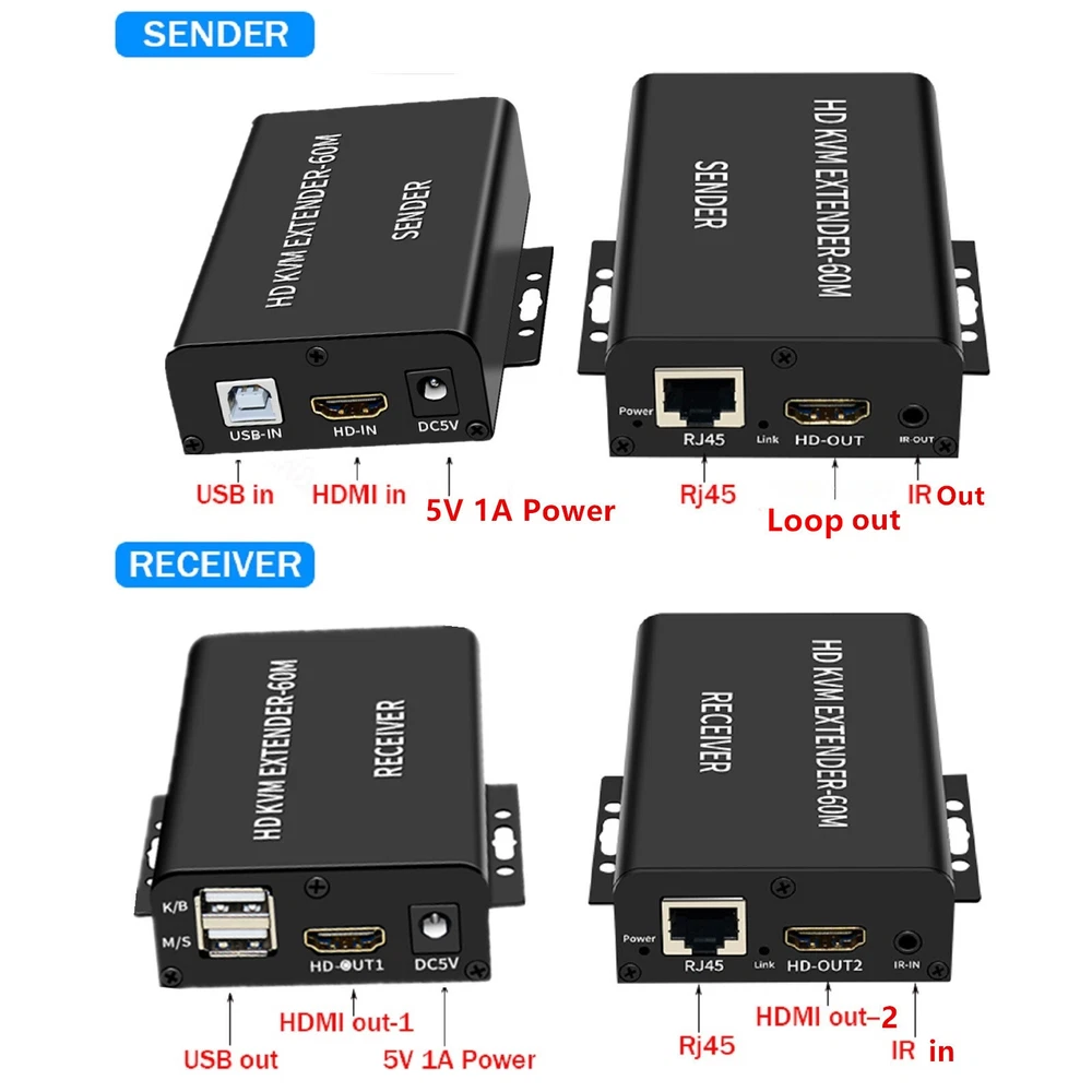 SAFE & SECURE SHOPPING 100% SATISFACTION GUARANTEED FAST SHIPPING Store Categories Store Categories You may also like 60M Video Extension Adapter HDMI KVM USB-A Keyboard RJ45 Lan Ethernet Extender C Product Description 1080P 60m USB HDMI KVM Extender with Dual HDMI Out Over Rj45 Ethernet Cable Video Converter Support HDMI Loop Laptop PC Keyboard Mouse Specifications: Maximum single link range: 1920*1080, 1080p Support output video: HDMI Support synchronous transmission of audio and video Mouse/Keyboard Interface: USB DTV/HDTV: 1080p/1080i/720p/576p/480p/576i/480i Transmission distance: Up to 60m(using CAT6 cable) Operating temperature: 0 ~ +70℃ Operating humidity: 10% ~ 85%RH(no condensation) Storage temperature: -10℃ ~ +80℃ Storage humidity: 5% ~ 95%RH(no condensation) External power supply: DC5V 1A Support POE function: Single ended power supply Color: Black Size: 130x100x27mm Features: This Extender has many features that enable it to perform in superior manner: 1. One pair as a full functional module, no need of setting. 2. CAT-5e/6 cable can substitute HDMI cable to achieve long distance transmission. 3. CAT-5e/6 follow the standard of IEEE-568B 4. Transmission distance can be up to 60 meters for 1080p while using CAT6 cable. 5. Support USB Keyboard/mouse extension,more convenient 6. One HDMI output in the sender side. 7. Two channel HDMI output from the receiver,so,in total 3 monitor can be displayed at the same time 8. HDCP1.2 1.2 compatible 9. Plug and play,easy to use Package Content: 1x Sender 1x Receiver 2x Selecteable Power Adapter 1x USB A-B cable 1x User Guide Shipping Returns Contact Us Payment Shipping We ship most of our orders within 24 hours, and may up to 48 hours. If you want faster shipping way, please contact us before making a payment. Sometimes due to problems with our transportation company system, your shipping information may be delayed to update. We recommend that you try again after 3-4 days. If you still haven't checked the shipping information, you can contact us via ebay message. Returns 1. 30 days warranty from the purchased date. Please contact us via email before returning the defective item. 2.Our warranty does not extended to any product that are physically damaged or that are not under normal operating conditions as result of misuse or improper installation on the buyer/user's part. 3.Return items should include the original packaging and all accessories. buyers MUST contact us for the returning address. 4.In all cases, buyers pay shipping fees at their own cost to return products for exchange or refund. We will be responsible for the postage of replacements. Refund will be made upon receipt of the returned item. Contact Us Pls contact us if you have any problems,we will try our best to solve for you Payment We accept all verified payment from eBay. Copyright © 2022 Tongtool