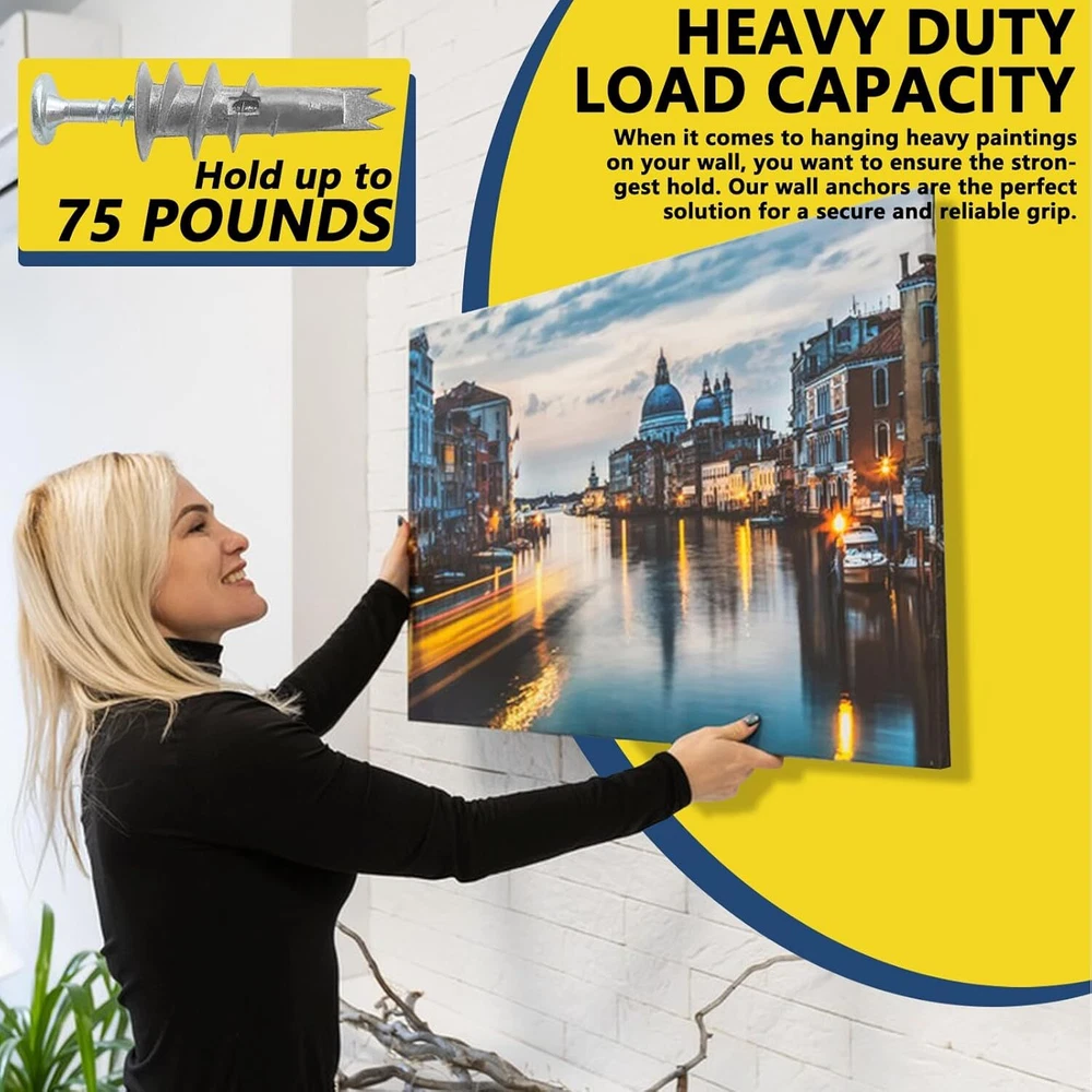 60PCS #8 Self-Drilling Drywall Anchors and Screws Kit, Heavy One Size, Silver Product Details Product Dimensions : 1.38 x 0.31 x 0.02 inches; 6.74 ounces Manufacturer : FJCTER Size: One Size Color: Silver Material: Zinc Alloy Brand: FJCTER Item dimensions L x W x H: 1.38 x 0.31 x 0.02 inches PREMIUM QUALITY & STRENGTH: Crafted from high-quality zinc alloy, these drywall anchors are built for strength and durability. Paired with galvanized screws, this drywall anchor kit offers exceptional rust resistance and can support up to 75 lbs. Perfect for wall anchors for drywall heavy duty applications STABLE INSTALLATION DESIGN: Our dry wall anchors and screws kit features deep-cut threads that securely grip drywall, providing a firm hold. These wall screws and anchors drywall heavy duty are designed to ensure a stable, pull-out resistant installation for your home projects HASSLE-FREE INSTALLATION: These self drilling drywall anchors are easy to install without pre-drilling. Simply use a screwdriver or screw gun to secure them into the drywall. This drywall anchor kit minimizes dust and ensures the anchors wedge tightly, providing a strong grip VERSATILE & RELIABLE: Ideal for medium to heavy-duty applications, these drywall anchors and screws kit is perfect for hanging shelves, light fixtures, and more. The quality zinc alloy construction makes these wall anchors for drywall a reliable choice for various installations around your home COMPLETE ANCHORS AND SCREWS KIT: This drywall screws and anchors set includes zinc self drilling drywall anchors paired with high-quality galvanized screws. The anchors are designed to easily penetrate drywall, making this drywall anchor kit a must-have for any DIY enthusiast FJCTER is committed to providing high-quality hardware solutions that simplify your home improvement projects. FJCTER Zinc Self-Drilling Drywall Anchors and Screws Kit is designed for those who seek durability and ease of installation in their wall-mounting needs. PRODUCT FEATURES: High-Quality Zinc Alloy Construction - Made from premium zinc alloy, these drywall anchors are built to last, offering high strength, scratch resistance, and rust protection for reliable long-term use. Heavy-Duty Galvanized Screws - The included screws are made of heavy-duty carbon steel with a galvanized finish, ensuring they resist corrosion and maintain their integrity, even in challenging environments. Deep Thread Design for Stability - The wall anchors feature deep-cut threads that penetrate drywall effectively, providing a secure grip that resists pull-out and holds up to 75 lbs. Effortless Installation - Designed for easy use, these self-drilling drywall anchors can be installed without the need for pre-drilling, reducing installation time and minimizing dust production. Wide Application Range - Perfect for medium-duty applications, these anchors are ideal for hanging shelves, light fixtures, mirrors, curtain rods, and other household items on drywall. Enhanced Holding Power - The large thread design maximizes the holding power of these wall anchors, ensuring your items stay securely in place. Corrosion Resistance - Both the zinc alloy anchors and galvanized screws are resistant to corrosion, making them suitable for use in humid or damp areas like bathrooms and kitchens. SPECIFICATIONS: Material: Zinc Alloy Anchors, Galvanized Carbon Steel Screws Anchor Size: 1/2" x 1-1/4" Screw Size: #8 x 1-3/8" Capacity: Up to 75 lbs Quantity: 30 Anchors & 30 Screws