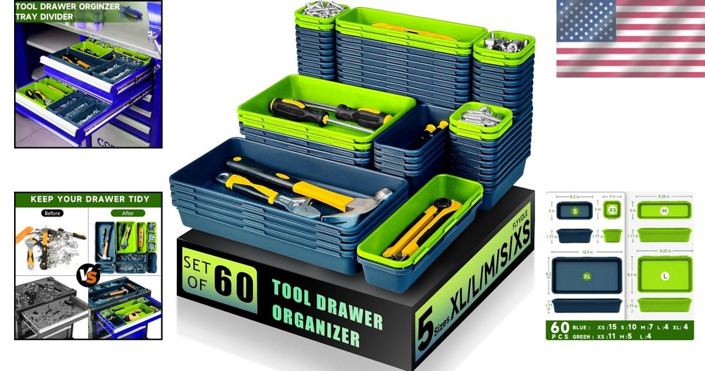 Tool Box Organizers 60PCS Plastic Storage Trays for Toolbox Garage Desk ‹ › ‹ › ‹ › ‹ › ‹ › ‹ › ‹ › ‹ › ‹ › Tool Box Organizers - 60PCS Plastic Storage Trays for Toolbox & Garage Transform your workspace into a haven of order and usability with our 60-pack storage trays, designed meticulously for both toolboxes and desks. With a diversity in sizes and a build quality, you'll never have to deal with the clutter of disorganized tools and parts again. Features: Generous Variety: 60 trays in total, featuring 4 XL size (12.5x6.2x1.77in), 8 L size (9.25x6.2x1.77in), 12 M size (9.25x3x1.77in), 10 S size (6.2x3x1.77in), and 26 XS size (3x3x1.77in). Includes 40 trays in Blue and 20 in Green. Quality: Crafted from high-quality solid plastic for unmatched durability, ensuring your tools and small parts remain safe and secure. Innovative Interlocking Design: Our trays feature an interlocking mechanism; use them separately or combine them to tailor your organization to your specific needs. Versatile Storage Solution: Ideal for storing a variety of tools, including screwdrivers, wrenches, claw hammers, screwdriver bits, screws, and bolts. Wide Application: Perfect for any space needing organization – from office drawers to garage storage, these trays serve as excellent desk drawer organizers. Benefits: Effortlessly maintain order with customizable storage options. Durable and long-lasting, ready to hold even your heaviest tools. The perfect blend of functionality and style with a beautiful color selection. Fit for various scenarios ensuring you can organize anywhere. Upgrade your storage game compared to standard dividers with larger sizes for increased capacity. Why choose our Tool Box Organizers? Say goodbye to chaos and hello to efficiency with our expertly crafted Tool Box Organizers. This 60-piece set combines exceptional quality with thoughtful design, creating an optimal solution for tool and small part storage. Whether you're a professional tradesperson or a DIY enthusiast, these trays offer the flexibility and durability needed to keep your workspace tidy and your mind clear. Elevate your organization today and take the first step toward a cleaner, more efficient workspace! Shipping Free & Fast Shipping - We offer free shipping to most of the USA with a normal delivery time of 3-7 days. However, due to the current situation, additional delivery time (up to 3 weeks) may be required for some items. Alternative Carriers - We may use alternative carriers (e.g. USPS, FedEx, UPS, etc.) to ensure your package arrives safely and on time. Due to the use of multiple carriers, we are unable to provide a tracking number automatically. Handling Time - Orders are processed and shipped within 1-2 business days of receiving cleared payment. Shipping Restrictions - Shipping to Alaska, Hawaii, Puerto Rico, Guam, and other US territories may incur shipping charges or delivery restrictions. Please contact us before ordering, or your order can be refunded/cancelled. State Restrictions - There may be restrictions based on your state of purchase. For example, certain items may not be shipped to California due to state regulations. Contact for Tracking Updates - If you require tracking updates or have any concerns about the delivery of your order, please feel free to contact us, and we will be happy to assist you. Return 30-Day Hassle-Free Returns - We want you to be completely satisfied with your purchase. If you are not, you can return the item within 30 days of receiving it for a full refund or exchange. Easy Return Process - To start a return, simply contact us and we will provide you with a prepaid return shipping label and detailed instructions. Restocking Fee - There are no restocking fees for returns. However, the buyer is responsible for return shipping costs if the return is not due to a seller's error. Refund Processing Time - Refunds will be processed within 5 business days of receiving the returned item in its condition. Payment We accept all major credit cards, PayPal, and Apple Pay for your convenience. Your payment information is secure and encrypted to ensure a safe and seamless transaction. Please complete your payment within 3 days of purchase to avoid any delays in shipping. Feedback Your feedback is extremely important to us. We strive to provide the best products and customer service possible. If you are satisfied with your purchase, please take a moment to leave us a positive review. If you have any concerns or issues with your order, please contact us before leaving negative feedback. We are committed to resolving any problems and ensuring your satisfaction. Contact Us If you have any questions or concerns, please feel free to out to our customer support team. You can contact us through the eBay messaging system. We are available Monday to Friday, 9:00 am to 5:00 pm EST, and we will do our best to respond to your inquiry within 24 hours. Buy it now and enjoy a pleasant shopping experience! Item Width: Toolbox Organizer Item Length: Toolbox Organizer Item Height: Toolbox Organizer Item Diameter: 12.6 Item Weight: 10 pounds Unit Quantity: 1 Features: Adjustable,Interlocking Design,Separatable Trays,Customizable Storage,Desk Drawer Organizer,Tool Storage,Wide Application Type: Tool Box Number of Items: 60 Material: Plastic Number of Drawers: 0 Size: XL Capacity: 10 lb Color: Blue Finish: Matte Unit Type: lb