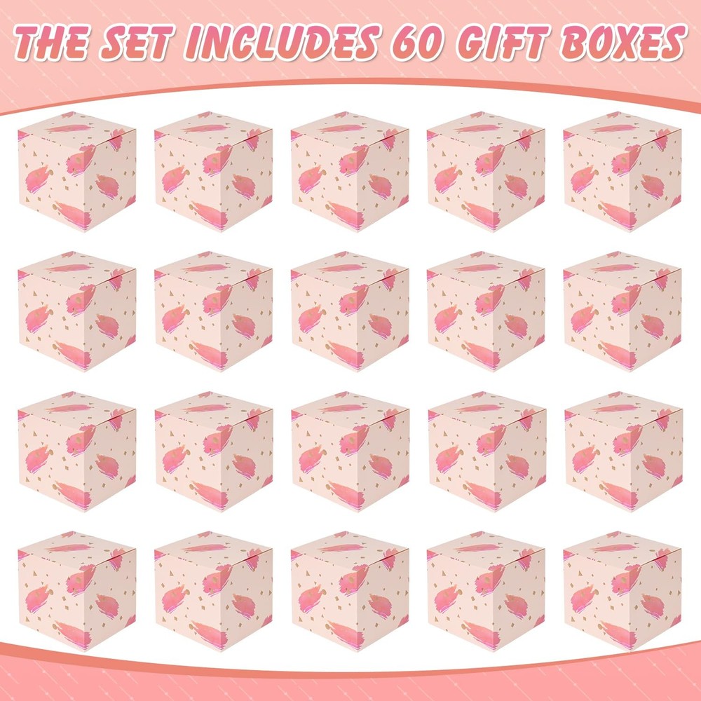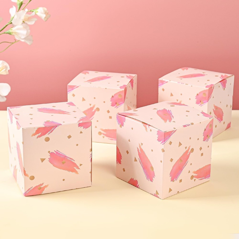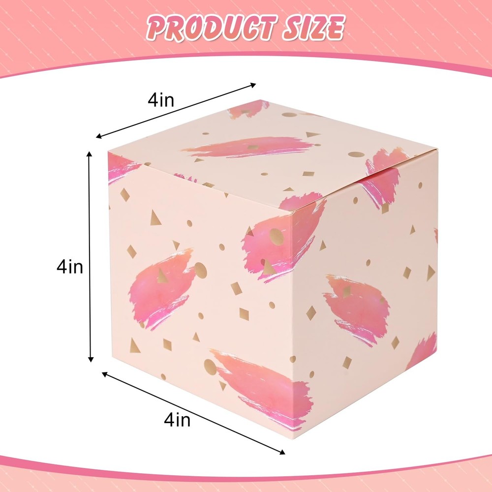 Make Your Special Occasion Unforgettable with Our 60 Pack Stunning Paper Gift Boxes! VERSATILE USAGE: Our small peach pink and watercolor gift boxes could hold a variety of items from craft items, to boutique, to party favors, to goodies for your small business and also gifts for wedding, birthdays party, baby bridal showers, anniversary, graduation. WIDE APPLICATION: The small paper boxes is peach pink and watercolor brush design printed. It's good to meet your various gift wrapping demands or décor your parties, also it would be prefect for retailers and small business store owners to wrap the products providing additial value. DURABLE AND REUSABLE: The paper pink favor boxes is made of strong paper cardboard and sturdy construction, can holds small gifts like cometics, candles, jewelry,grocery items and party gifts. EASY TO ASSEMBLE: The party favor boxes are easy to assemble when using, no adhesive or glue is required and they can also be folded flat to store easily. PREFECTY SIZE: The treat boxes is 4 x 4 x 4 inches, the sets includes 60 boxes.
