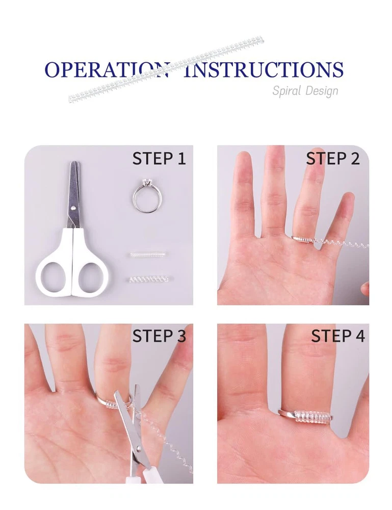 This ring size adjuster is a game-changer! The pack includes two styles—spiral and insert—offering multiple sizing options to fit nearly any ring. Made of soft, skin-safe silicone, it’s comfortable and nearly invisible once applied. Super easy to use—just slide or press it inside your ring for a snug fit. Perfect for both men and women, no resizing needed. Highly recommend for loose rings!