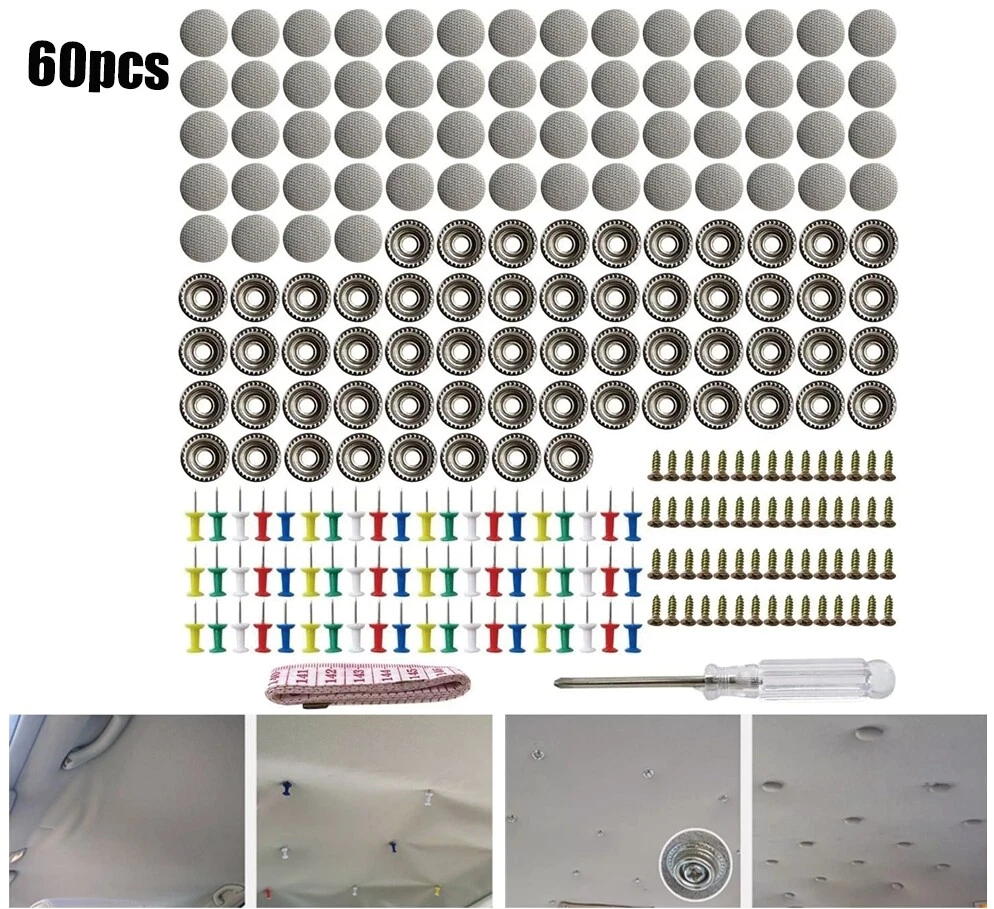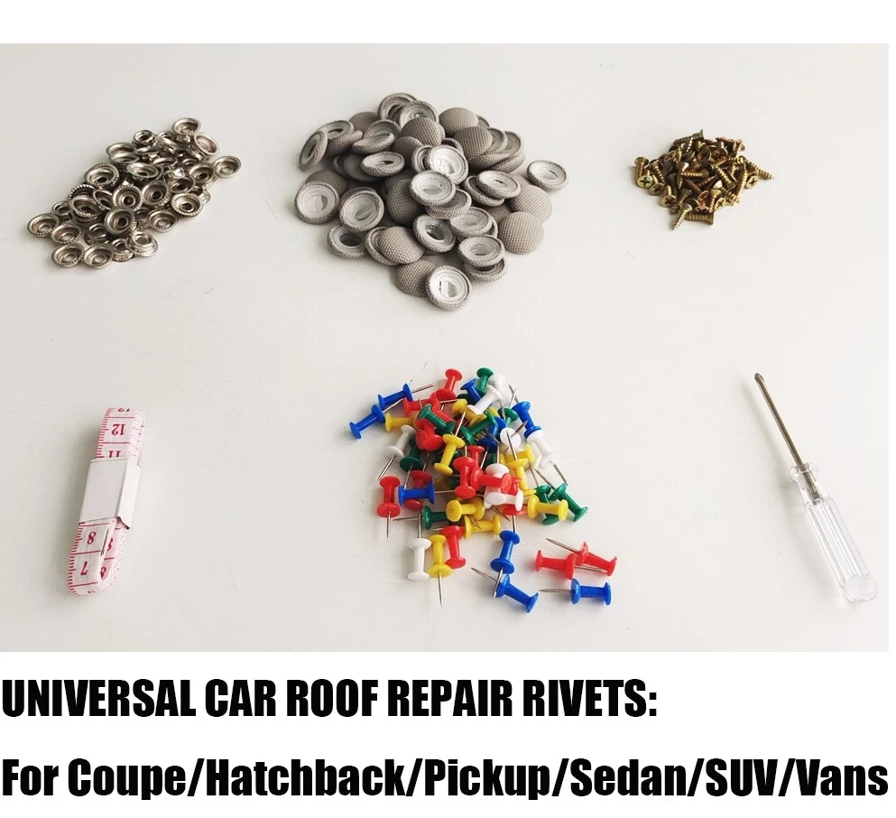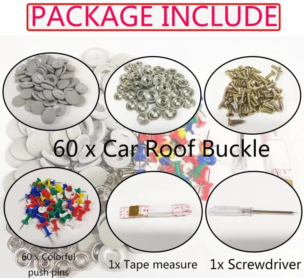 Package List: 60 x Car Roof Buckles 60 x Positioning Pins 1 x Screwdriver(Random Color) 1 x Flexible Rule(Random Color ) 60Pcs Car Roof Liner Ceiling Repair Buckle Sagging Headliner Pins Rivet Snap Kit Friendly Tips: The Size Is Measured By Hands, Please Allow Minor Error Of Measurement. Photo Color Might Be a Little Different From The Actual Product Due To Color Display Of Different Monitors. Features: Made Of High Quality Cloth, With Special Coating Keeps The Rivets From Rusting,Durable And Practical. Can Be Combined With a Variety Of Automobile Interiors. It Is Mainly Used To Decorate The Upper Part Of The Car Interior To Fix The Roof Of The Interior Of The Car. Will Help You Save Money To Enable You To Mend The Car At Home. It Doesn't Take Much Time Or Professional Tools. Specification: Color: Gray Material: Cloth, Metal Applicable: Universal Size:As The Picture Show Package List: 60 x Car Roof Buckles 60 x Positioning Pins 1 x Screwdriver(Random Color) 1 x Flexible Rule(Random Color ) Brand Unbranded Manufacturer Warranty 3 Months Country/Region of Manufacture China Material Cloth, Metal Universal Fitment Yes Color Gray Package Contents 1 Set Features Easy Installation Type Car roof buckles