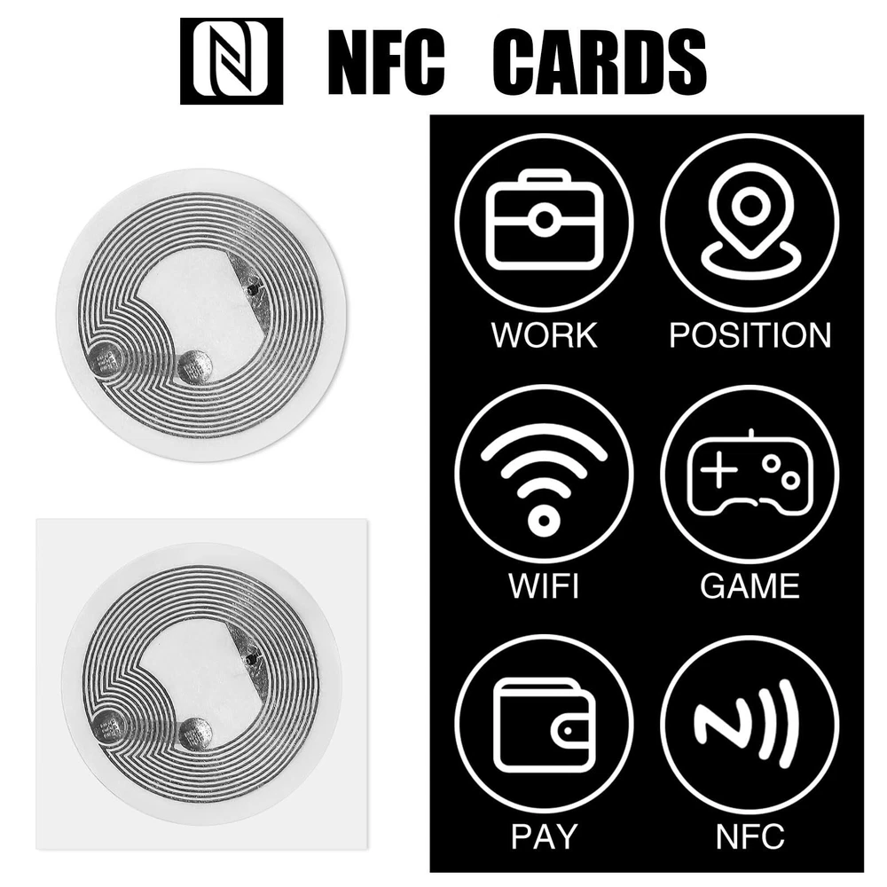 Specifications: Material:PET Color:as shown in the pictures Size: nfc stickers is 25 mm Our Features: 1.The size of the round NFC card is 25 mm in diameter, small and light,easy to carry. 2 NFC tags has enough memory, including 504 bytes, to provide you with enough storage space, and has a read/write lock function. Package includes: 60Pcs Nfc Stickers 【Nfc Stickers Features】:The size of the nfc stickers is 25 mm in diameter, small and light. Nfc sticker is composed of PET material, which is durable and sticky. 【Easy to Operate】:You can hover your phone over the 215 coin tags for ease of use and the data will be automatically entered into your phone.Please note that it is not suitable for use in strong magnetic environments and metal surfaces, which will destroy its functions.Please note the product description before purchasing. 【 NFC Chip】 :The NFC chip has 504 bytes in stock, providing you with enough storage space, and has a read/write lock function, which can quickly write the information you want. Compatible with TagMo Amiibo and all Android that support NFC function. (Note: When the device is written to the card, the lock option must be checked, otherwise the game console will not recognize it). 【Wide Application】:NFC stickers can be applied to outdoor mobile phone bracket labels, electronic label shelves, smart advertising, product certification, etc. It can also be pasted in different locations in the home or office to perform your tasks. It can automate tasks, share information, and enhance convenience. 【Exquisite Gift】: 60pcs Nfc stickers can be given as Christmas gifts to colleagues, friends or family members to experience smart life. This is ideal for gamers and collectors.