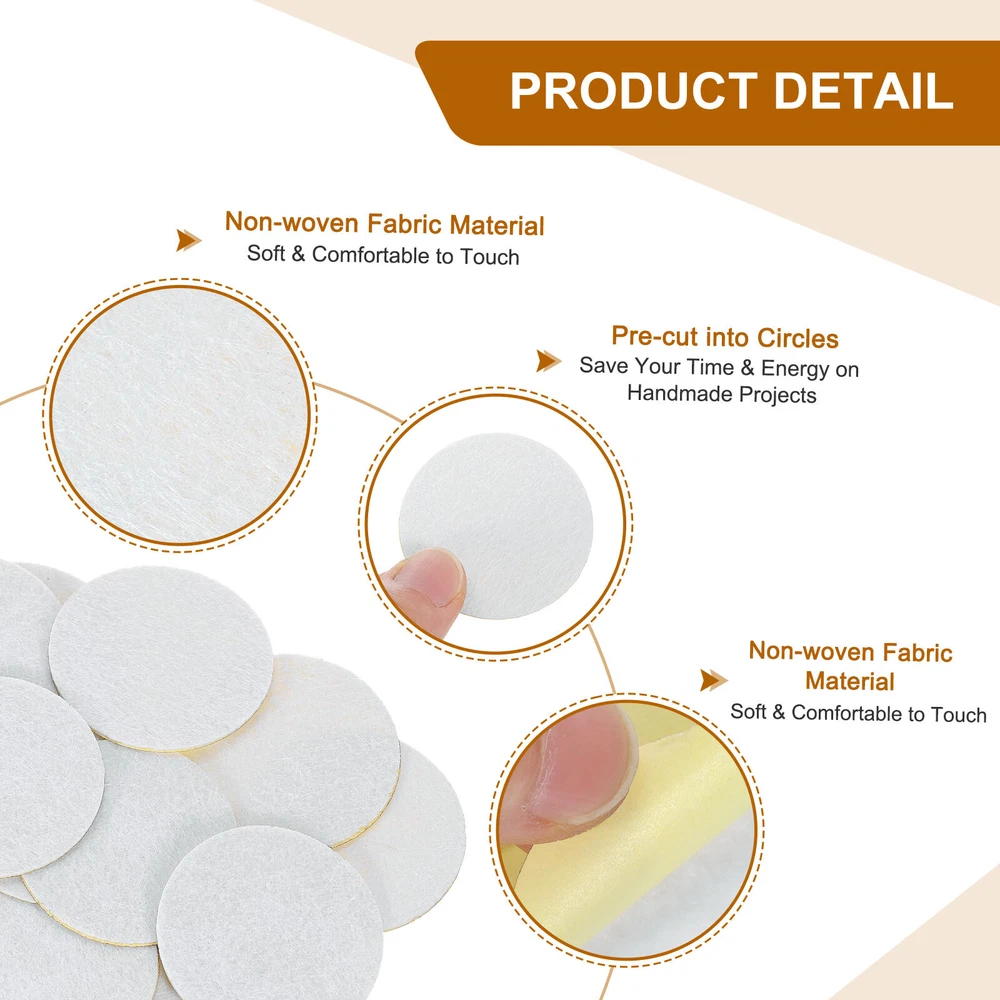 Description: Material: The round felt circle is made of non-woven fabric, which is moisture-proof, breathable, soft, lightweight and durable. It is very suitable for various handmade and DIY crafts, adding color and texture to your clothing and more. Pre-cut Design: The self-adhesive felt pads are pre-cut into circles, which brings convenience to your craft making, saving you time and energy in handmade projects, and saying goodbye to the trouble of cutting felt yourself! Easy to Use: Tear off the self-adhesive felt fabric sticker and stick it to the decoration. It is easy to remove and reusable. You can also sew it into the crafts, or use hot melt glue for better fixation. Application: Pre-cut felt pads are suitable for accessories, clothing, fabrics, decorative flowers, hairpins, brooches, collar pins, scrapbooks or other creative projects. They are also very suitable for handicrafts such as glass bricks or cards, paintings, etc. Specifications: Color: White Material: Non-Woven Diameter: 45mm/1.77" Thickness: 1mm/0.04" Package Contents: 60Pcs x Round Felt Circles