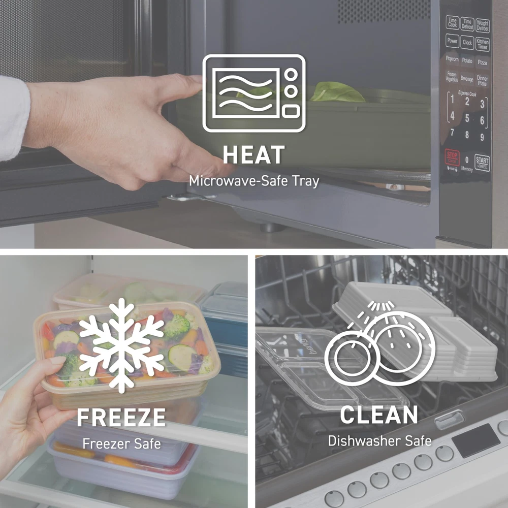 The 60-piece Prep set makes meal prep easy with 30 trays in different compartment sizes and 30 custom-fit lids that stack together to save space. Never worry about measuring your meals, as the volume is embossed right on each tray. The clean, modern design features a ribbed lid that makes it easy to open and close and each meal prep container is safe to pop in the microwave or store in the freezer. Prep is made with food-grade materials that contain no BPA, PVC, phthalates, lead, or vinyl. *Source: Stackline, U.S. Sales, 52 Weeks 2/1/23. Easy Meal Prep: These reusable bento box meal prep containers with lids make preparing delicious food fast and easy. Plus, the stackable trays and lids offer a convenient space saving design in your kitchen cabinets. Perfect Portions: The volume for each compartment is embossed inside the tray so that you always know you’re having healthy portions for your meals. Reusable: Cut out single-use plastics by reusing your Prep over and over again. Great For The Whole Family: Prep and take meals on-the-go with these lightweight meal prep containers that are perfect for adults to take to work, picnics, sporting events, and more! Safe Materials: meal prep containers are BPA-Free and safe to store in the freezer, heat up in the microwave, and clean easily on the top-shelf of your dishwasher. Everyone’s Favorite Meal Prep Set: Get everything you need for meal prepping in one convenient set! This durable and reusable 60-piece meal prep mix comes with 10 one-compartment trays, 10 two-compartment trays, and 10 three-compartment trays—all with their own fitted lids. Make breakfast, lunch, and dinner for the entire week or for multiple members of your family with this complete set. Portion Controlled Design: No need to measure your portions—volume is already embossed on the tray. The custom-fit lids keep food fresh all day long and stack together neatly to save you space in your pantry. Easy To Heat & Clean: Safely heat up your food straight from the freezer or refrigerator for warm, delicious meals and leftovers. Each BPA-free meal prep container is both microwave and top-shelf dishwasher safe. Note: before microwaving, open the lid corner to allow steam to vent. For best results, hand wash to extend the life of the product. Purchase With a Purpose: continues to be a proud supporter of Feed the Children, a 501(c)(3) nonprofit that gives hope and resources for hungry children and families. Since 2017, has donated nearly $300,000 to help put an end to hunger. What You Get: 10 one-compartment trays, 10 two-compartment trays, 10 three-compartment trays, 30 custom-fit lids, downloadable recipes, and caring customer support.