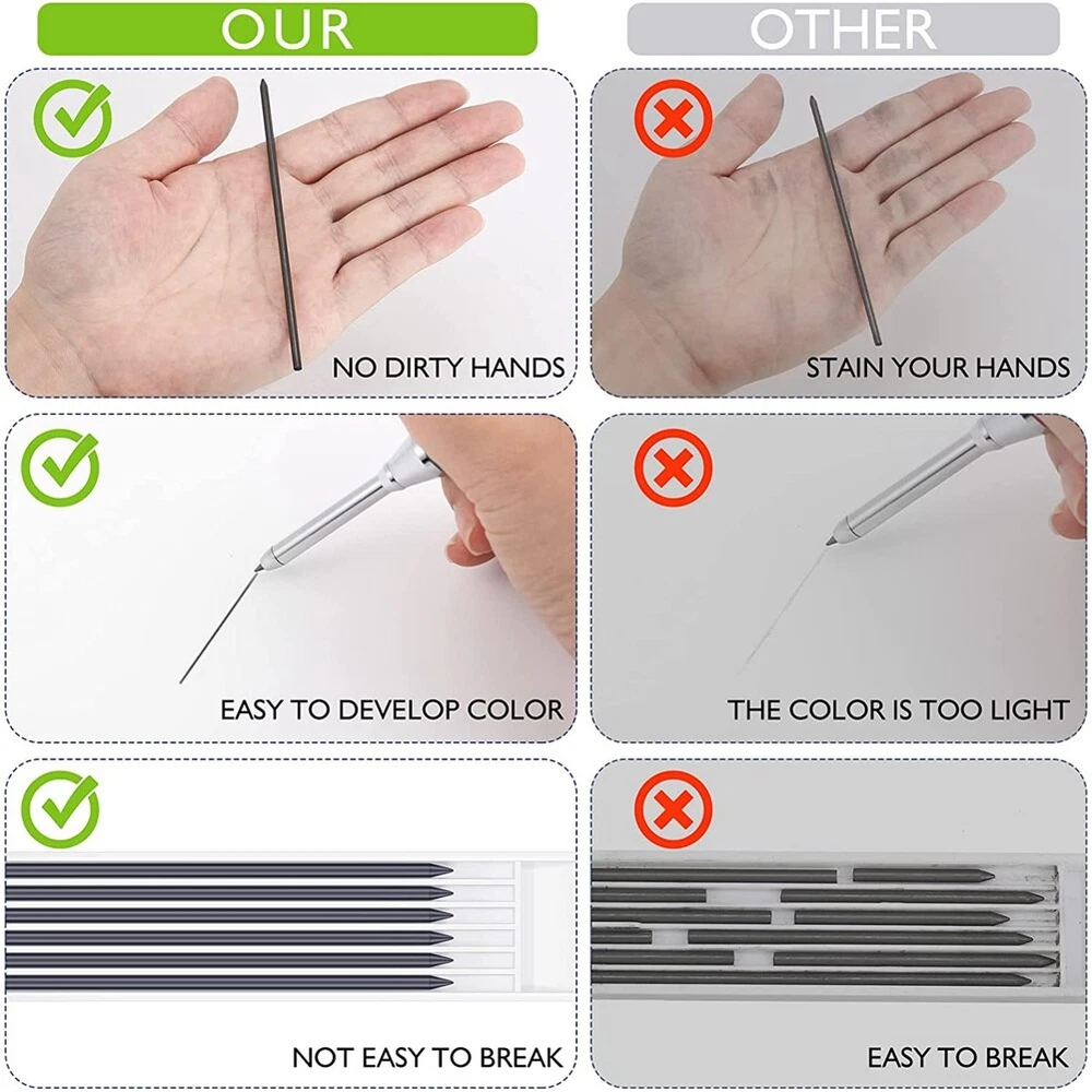 60Pieces 2.8 mm Solid Carpenter Pencil Refills for Woodworking Mechanical1621 What you receive: You get a total of 60 solid color woodworking pencils set, simple colors, you can use these woodworking pencils for a long time and share with your colleagues Graphite material: Woodworking marker pencils are mainly made of high-quality graphite, with good writing experience, waterproof and not easy to break, which can meet your needs Practical features: These woodworking pencils are solid, can replace ordinary pencils for woodworking, easy to record on the board, very practical Reasonable Size: Woodworking Pencil Set is reasonable size, about 2.8mm/0.1inch in diameter and 120mm/4.7inch in length SUITABLE FOR MULTIPLE OCCASIONS: You can use our woodworking pencils for different occasions such as wood, jewelry, glass, carving, crafts, metal, as well as for writing, drawing and drafting color:Blue Material:plastic Package Contents: 60 x carpenter pencils